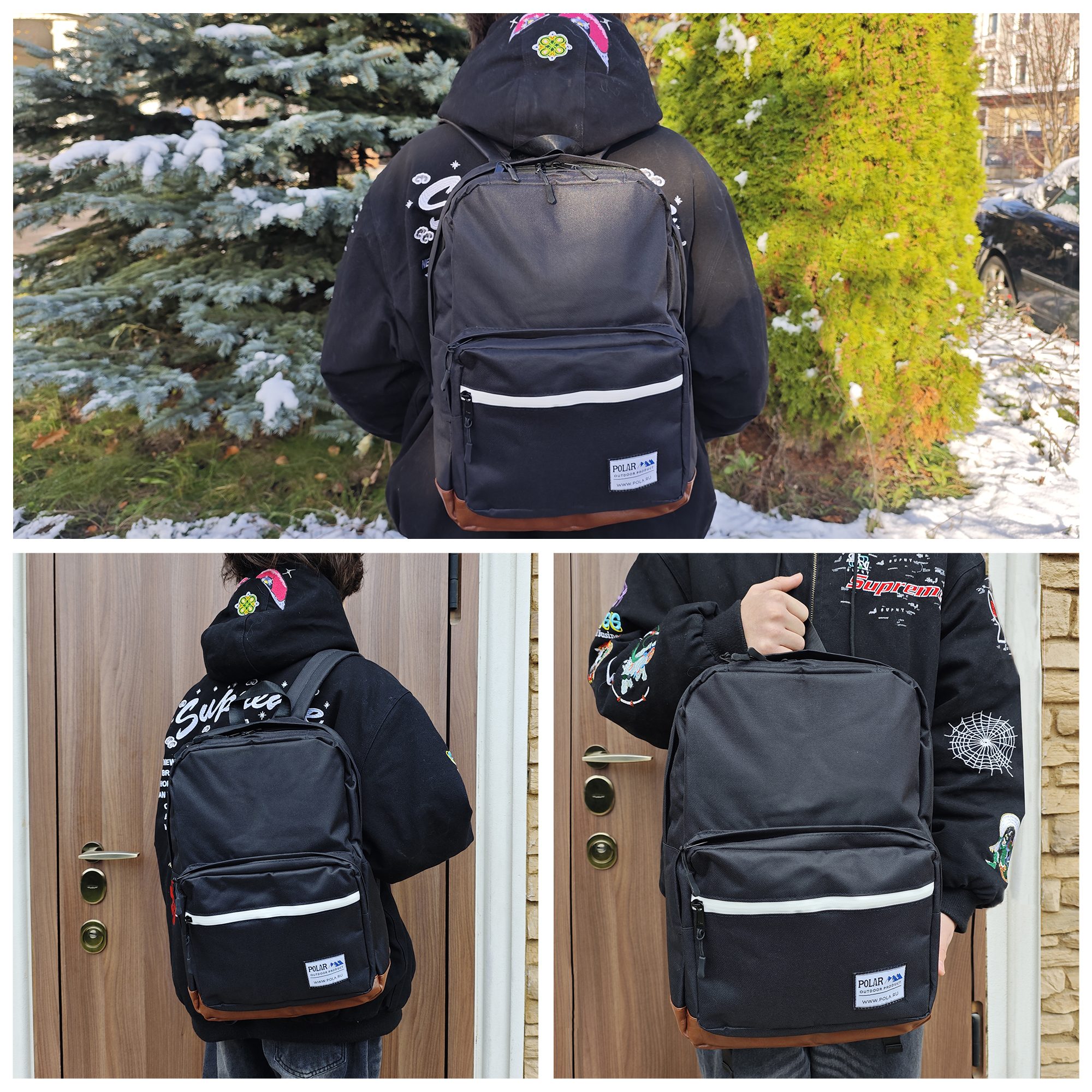 Городской рюкзак Polar прекрасно подходит для повседневной носки. Основное отделение застёгивается на молнию. Внутри рюкзака есть открытое отделение для планшета и ноутбука диагональю 15 и документов в формате A4. Спереди рюкзака расположены два потайных кармана и один накладной карман на молнии для мелочей. Низ рюкзака выполнен из экокожи. Лямки мягкие, с поролоновыми вставками. Лямки регулируются по длине 90 см. Сверху ручка высотой 8 см.
