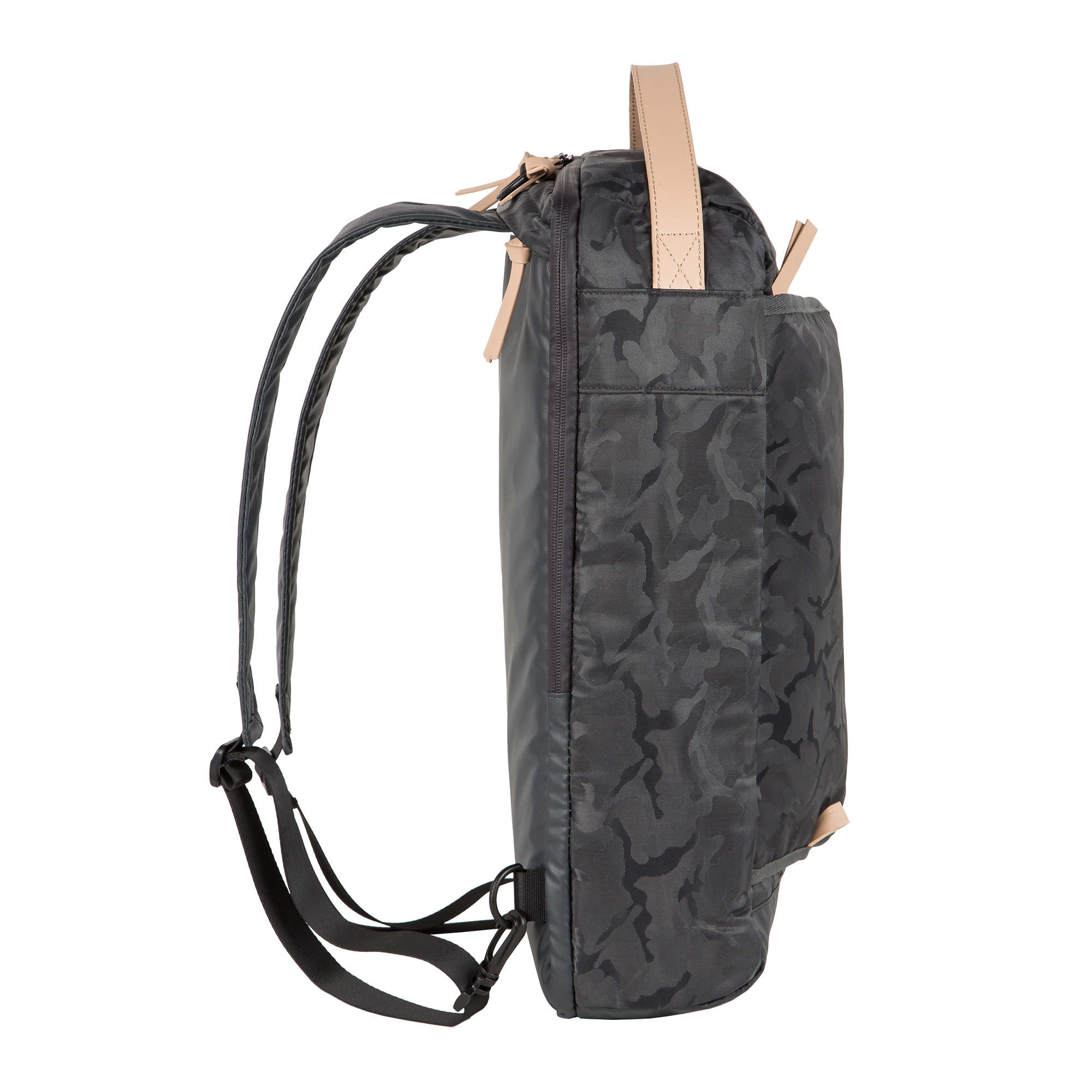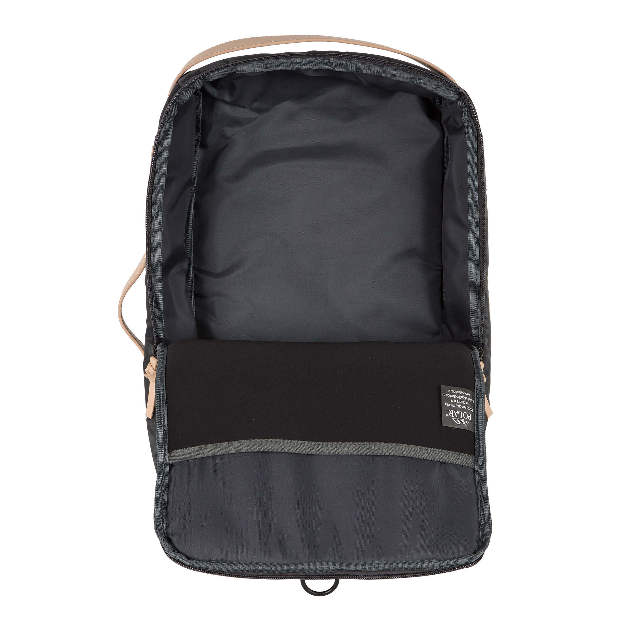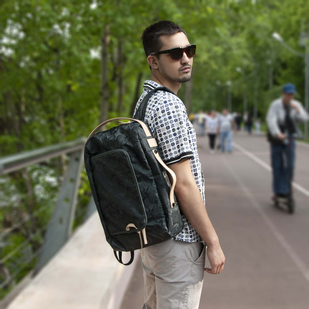 Оригинальный, ультрамодный рюкзак- сумка POLAR выполнен из полиэстера с водоотталкивающей пропиткой и предназначен для модных и стильных, ценящих не только комфорт и удобство, но и непревзойдённый, современный дизайн. Передняя часть сумки украшена абстрактным рисунком, а спинка, лямки и дно рюкзака выполнены из однородного материала. Главной особенностью данной модели является то, что её можно использовать, как сумку, так и рюкзак, для этого достаточно открыть заднее отделение и вытащить лямки. Спереди сумки-рюкзака трансформера есть накладной, вместительный карман на молнии, внутри этого кармана в свою очередь есть два открытых кармашка. Рюкзак вмещает ноутбук размером до 17 дюйма. Размеры отсека для ноутбука 39 x 27 x 2.5. У данной модели есть две ручки для переноски сверху и сбоку, выполненные из кожи в контрастном цвете.