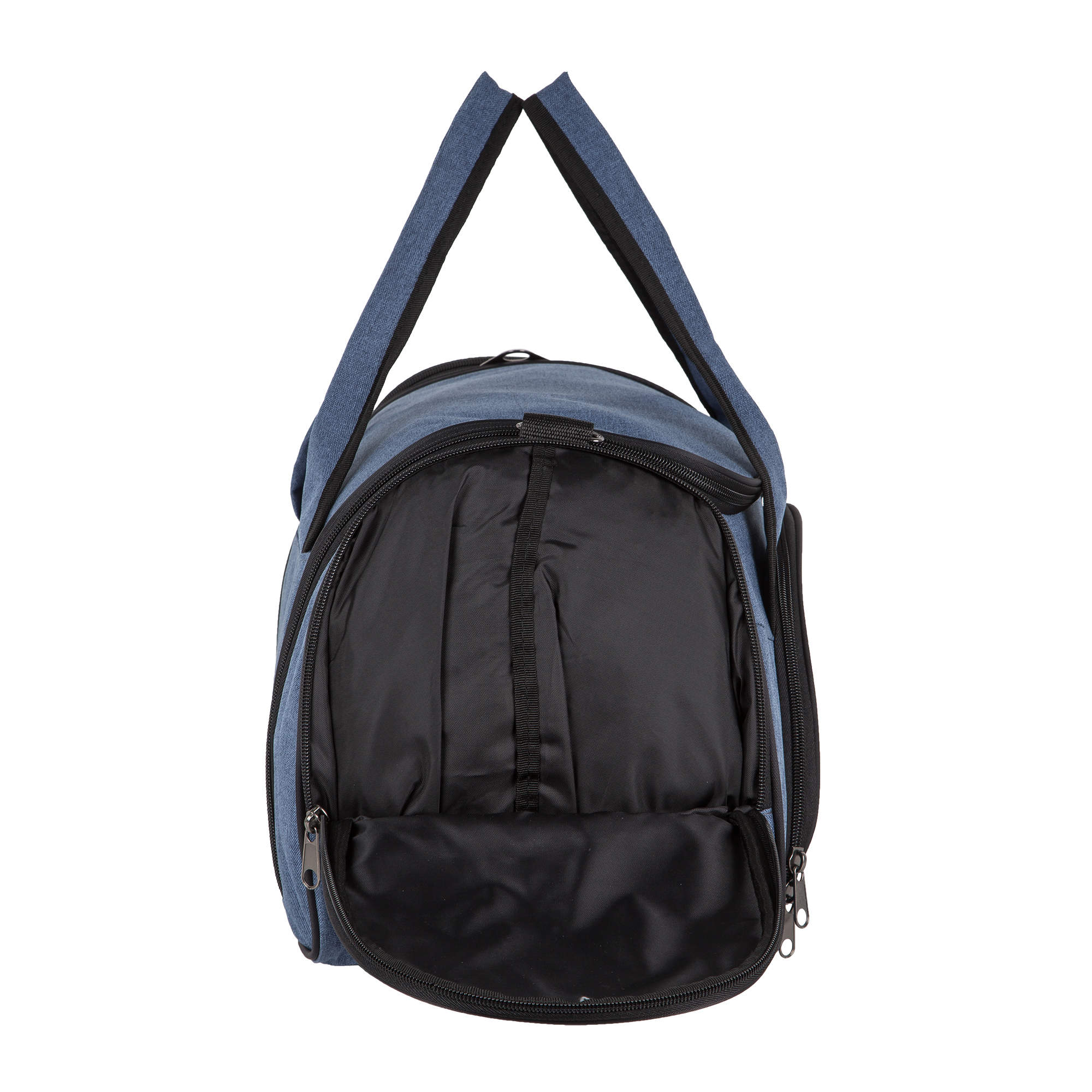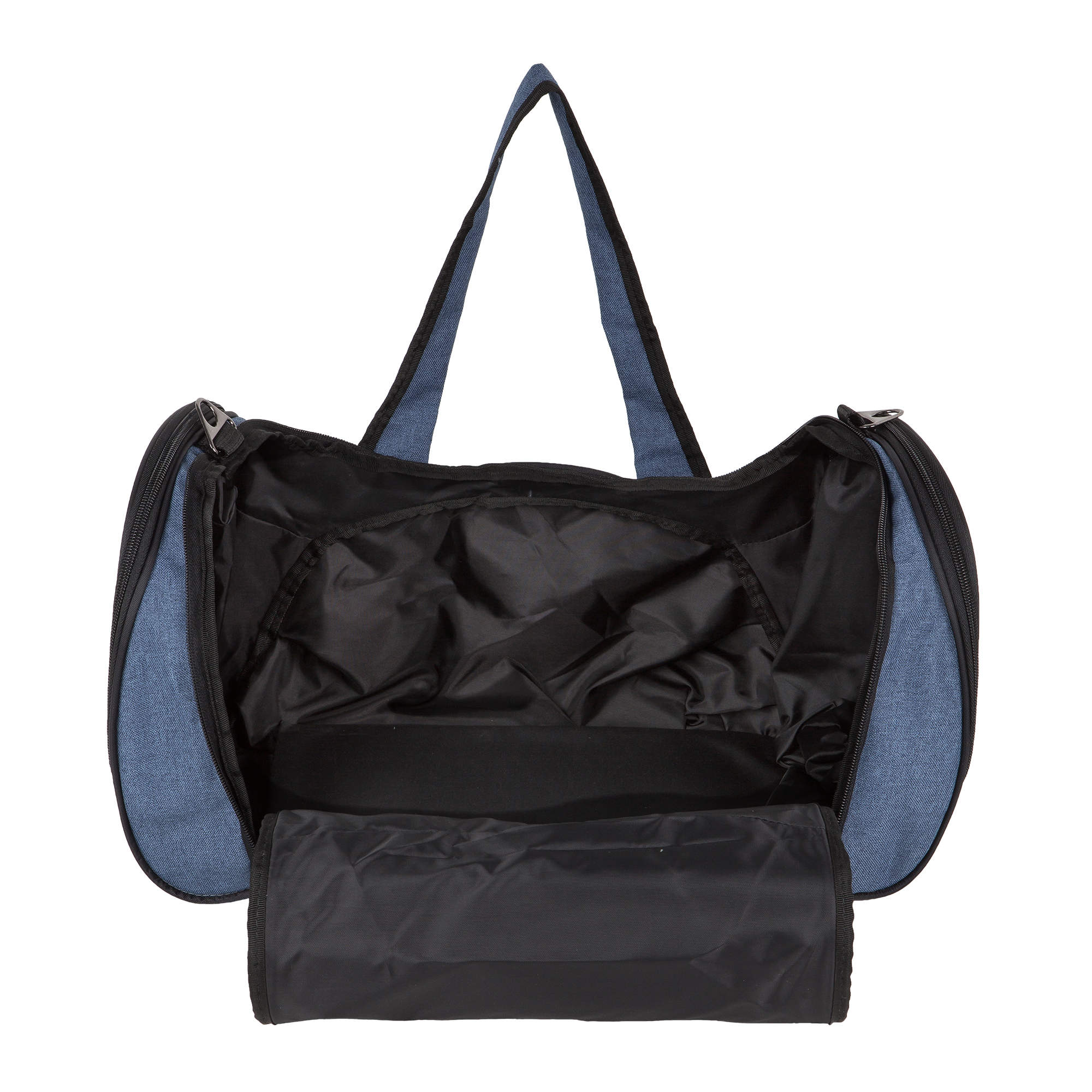 Сумка состоит из одного большого отделения для вещей и трёх карманов. Один глубокий боковой карман, который можно использовать под обувь или другие предметы. В переднем кармане есть сетчатый кармашек на молнии для документов или ключей.