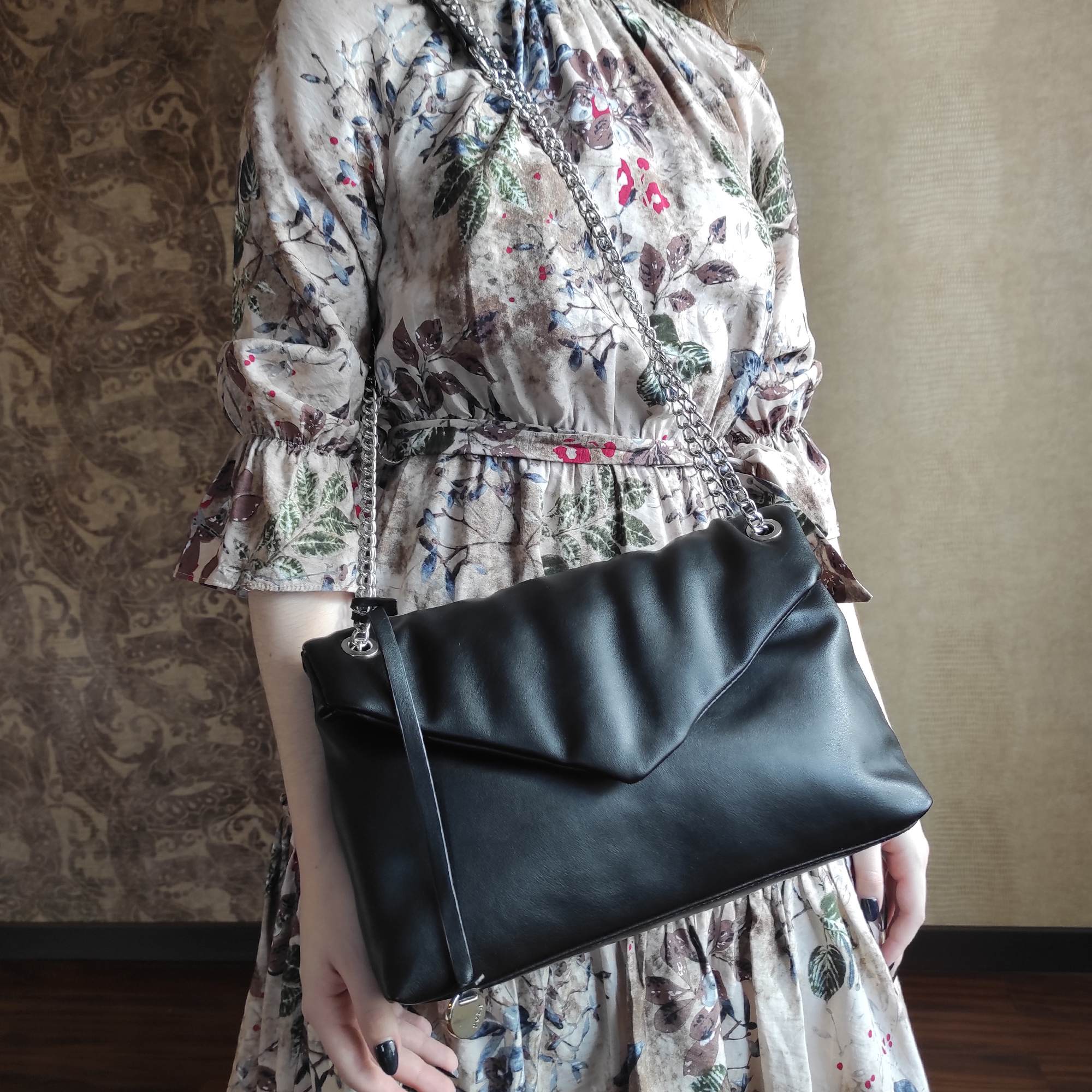 Стильная сумочка фирмы Pola выполнена из экокожи и великолепно подходит для создания вечернего образа и для повседневного использования модницами. Объемную модель дополнили скользящим ремнем-цепочкой, поэтому ее удобно носить и в руке, и на плече. Высота ручек 46 см. Основное отделение закрывается клапаном на магнитной кнопке, внутри карман на молнии для мелочей и небольшой кармашек. Цвет фурнитуры-серебро.