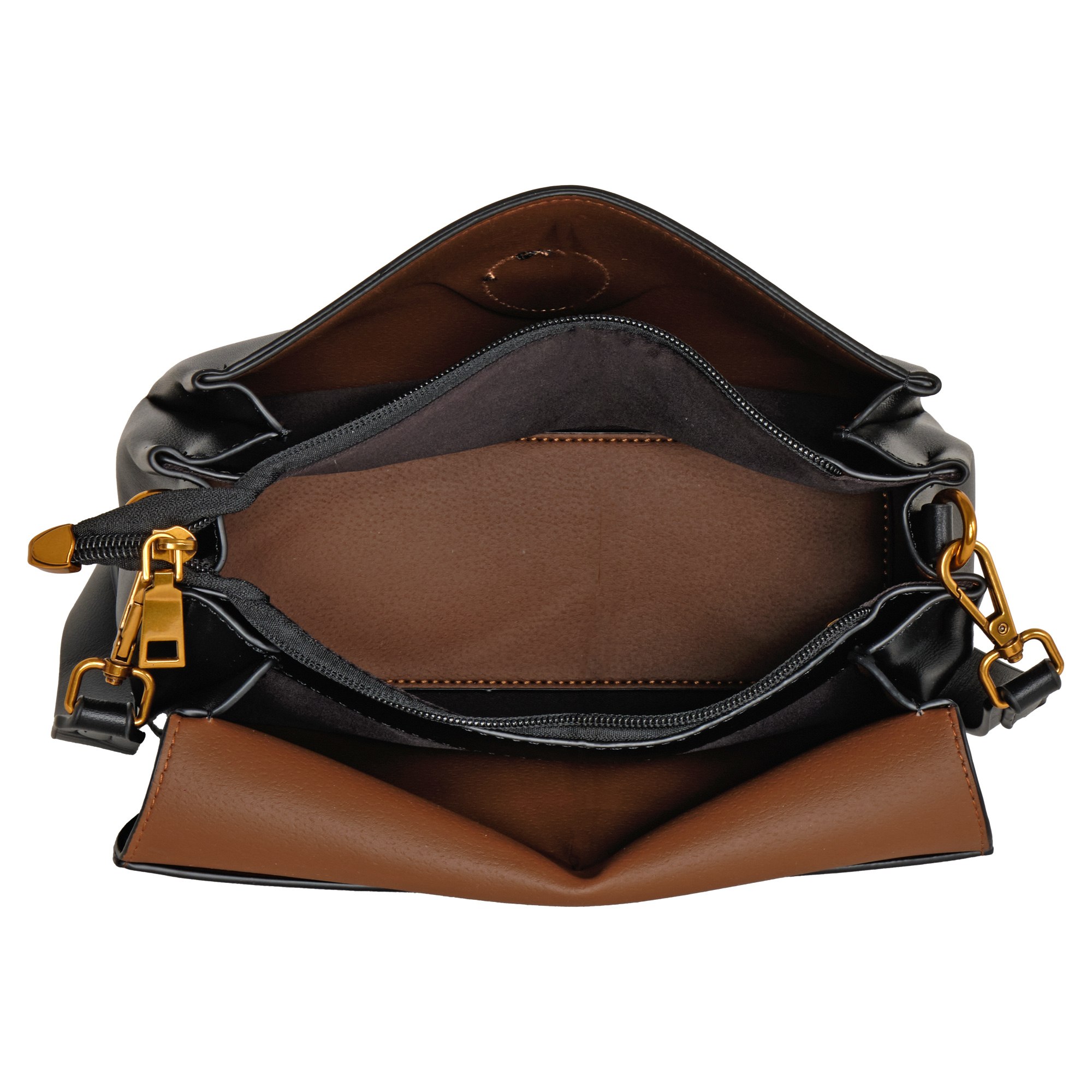 Стильная сумочка Pola выполнена из экокожи. Сумка состоит из одного основного отделения, которое закрывается поворотным замком. Внутри основного отделения кармашек на молнии и два открытых кармана. Данная модель отлично подойдет для повседневного образа. Максимальная длина съемного регулируемого ремня составляет 126 см, высота ручки 33 см. Цвет фурнитуры-латунь.