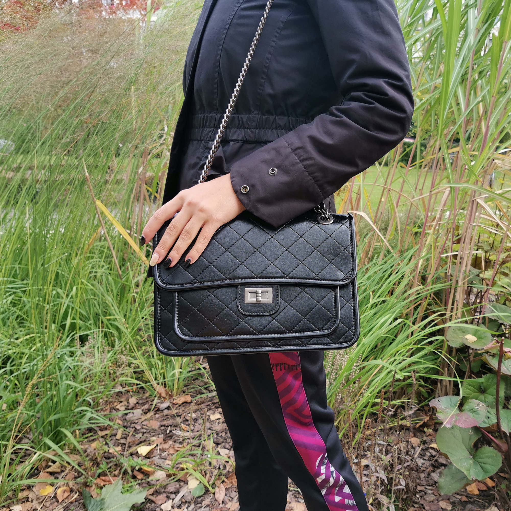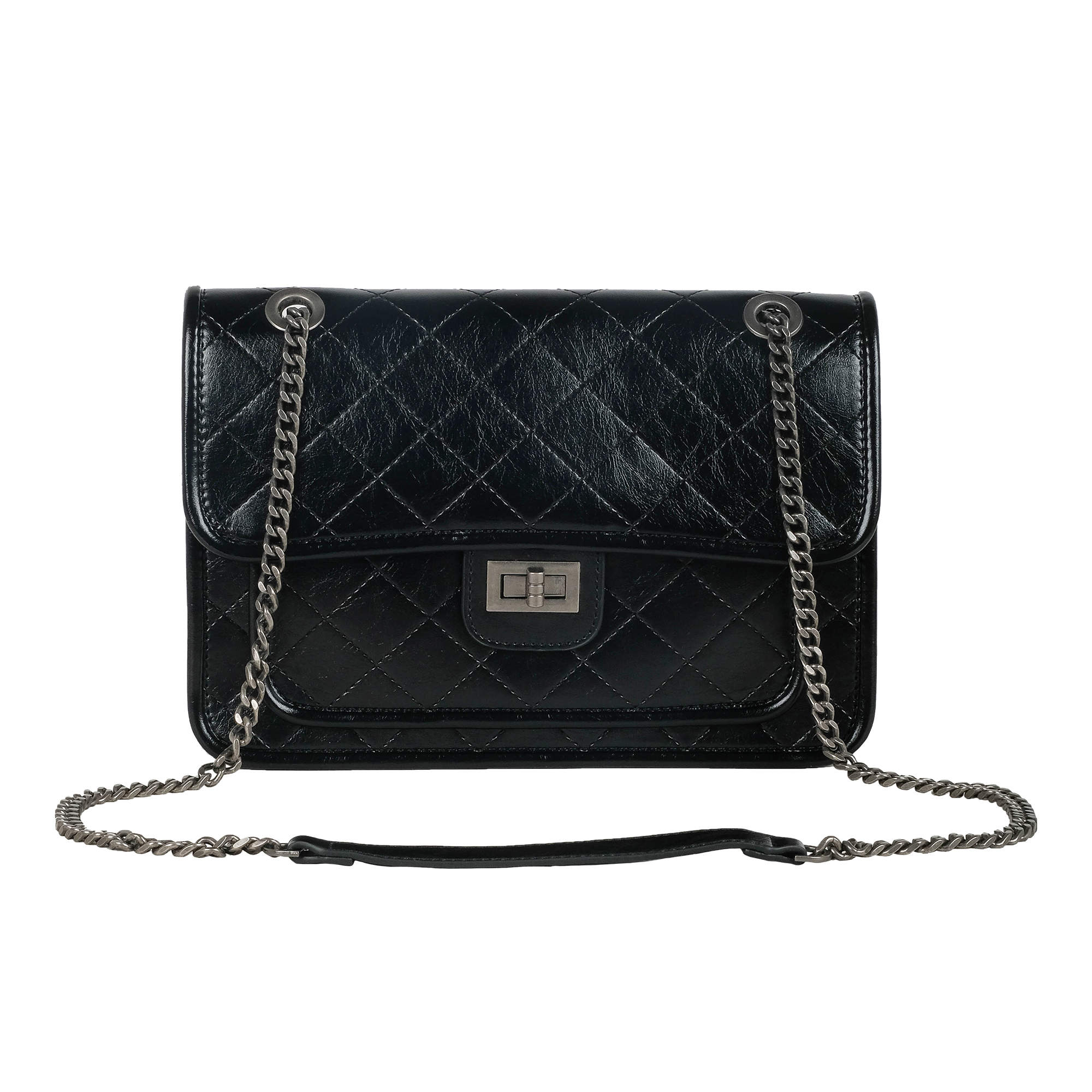 Элегантная сумка Pola выполнена из экокожи, застегивается поворотным замком-защелкой. Внутри два маленьких открытых кармана, один небольшой карман на молнии. Так же есть накладной открытый карман на передней стенке сумки. Лёгкая и удобная сумка на ремне-цепочке идеально украсит ваш образ. Максимальная высота ремня-цепочки 52см, позволяет носить сумку через плечо или на руке, сложив цепочку вдвое.