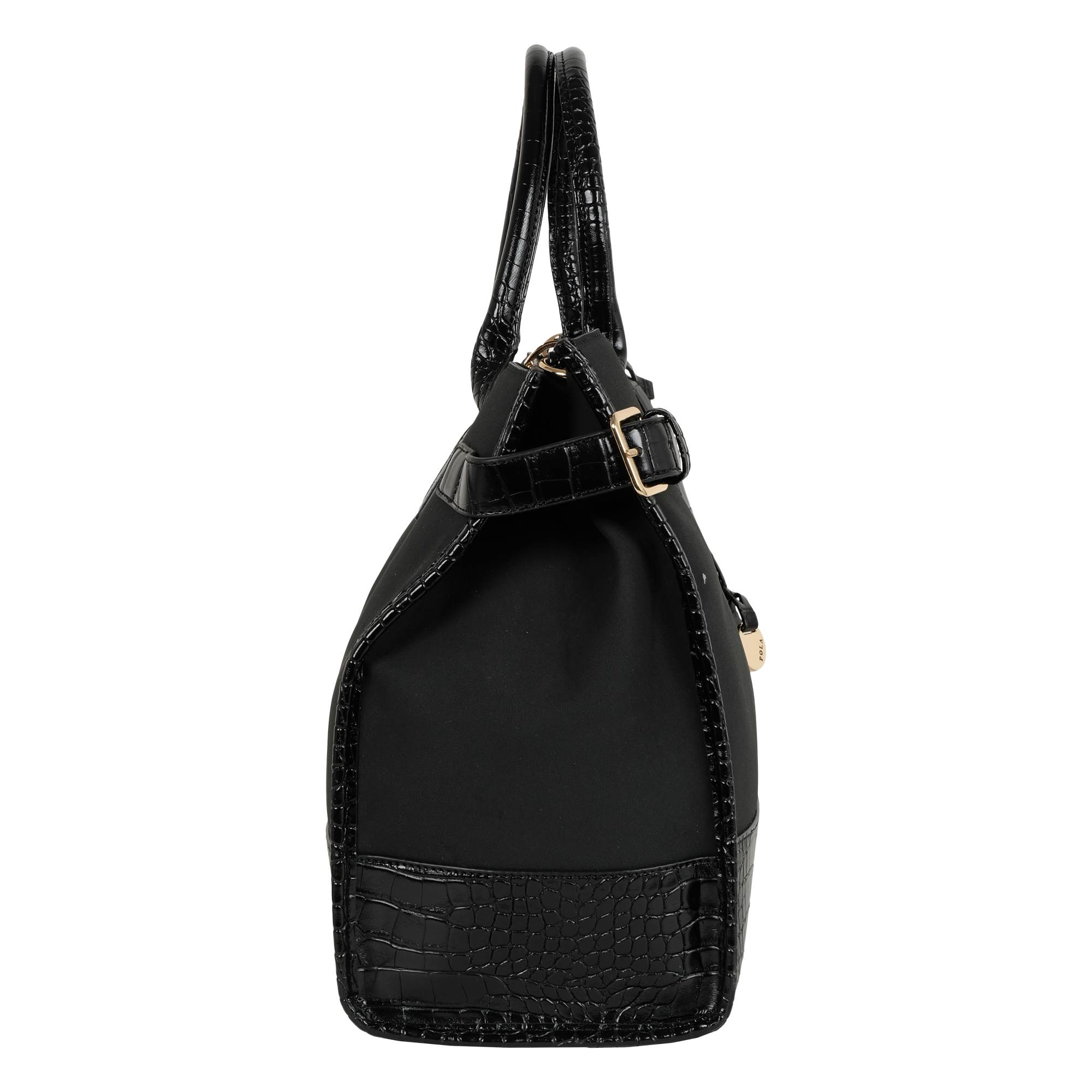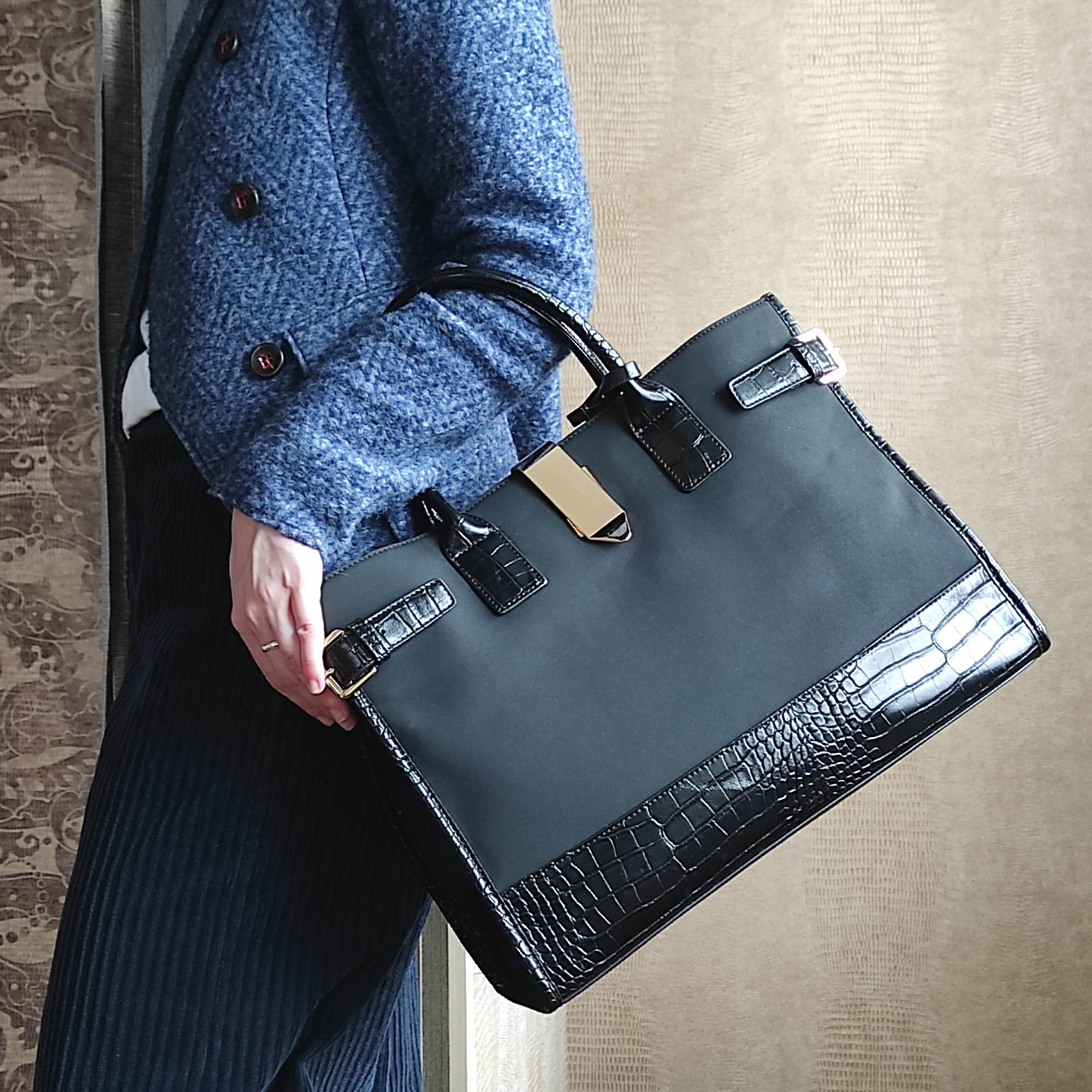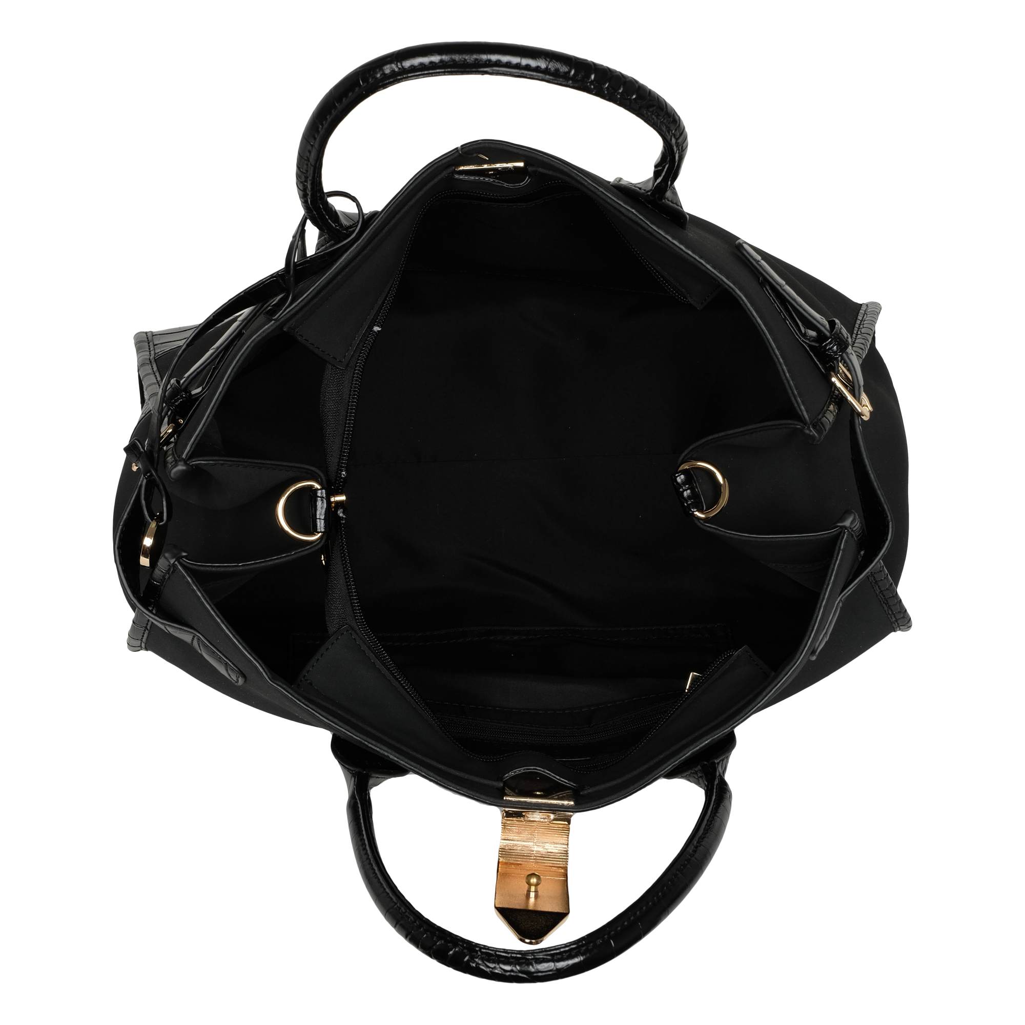 Стильная классическая сумка фирмы Pola выполнена из экокожи с выделкой под нубук предназначена для повседневного использования. Черный цвет модели поддержит любой образ. Сумка хорошо держит форму, поэтому документы А4 не помнутся. Закрывается основное отделение на металлическую защелку и молнию. Внутри два кармана на молнии и два небольших открытых кармашка. Высота ручек 14 см и тонкий, съемный, регулируемый ремешок, длина которого 120 см. Цвет фурнитуры-золото.