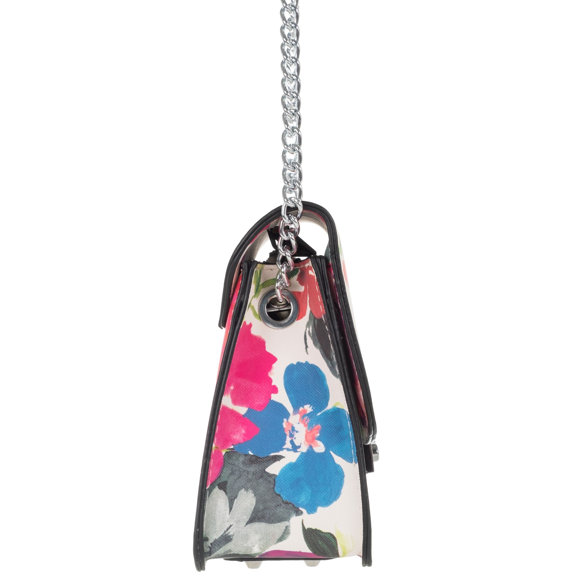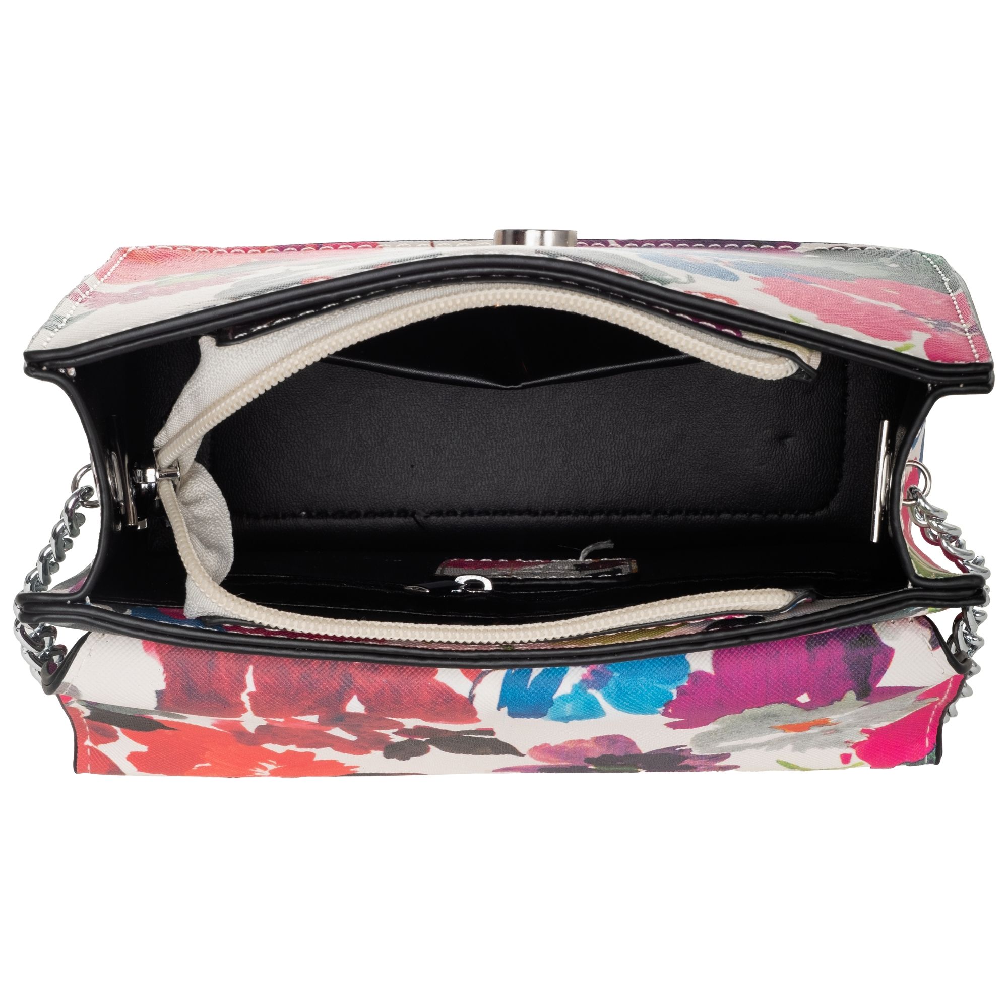 Миниатюрная женская сумка Pola выполнена из экокожи и украшена разноцветным оригинальным рисунком. Основное отделение закрывается клапаном с помощью металлического замка-защёлки и на молнию. Внутри основного отделения кармашек на молнии и один открытый карман. Данная модель отлично подойдет для повседневного образа. Высота ремешка 59 см. Цвет фурнитуры-серебро.