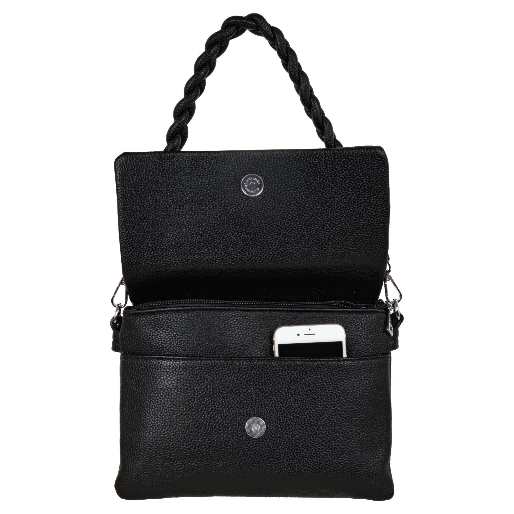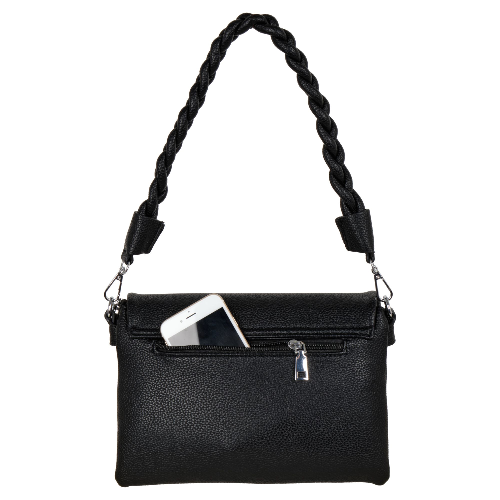 Стильная повседневная сумка фирмы Pola выполненная из мягкой экокожи, представляет собой идеальный аксессуар для современной женщины. Она обладает двумя просторными отделениями, каждое из которых защищено собственной молнией. Внутри находится дополнительный карман для мелких предметов. Сзади небольшой карман на молнии. Модель среднего размера выполнена в черном цвете, что делает её универсальной и подходящей к любому наряду. В комплекте съемный плечевой ремень длиной 130 см. Сумочка кросс-боди идеально подойдёт для повседневного использования. Цвет фурнитуры-серебро.