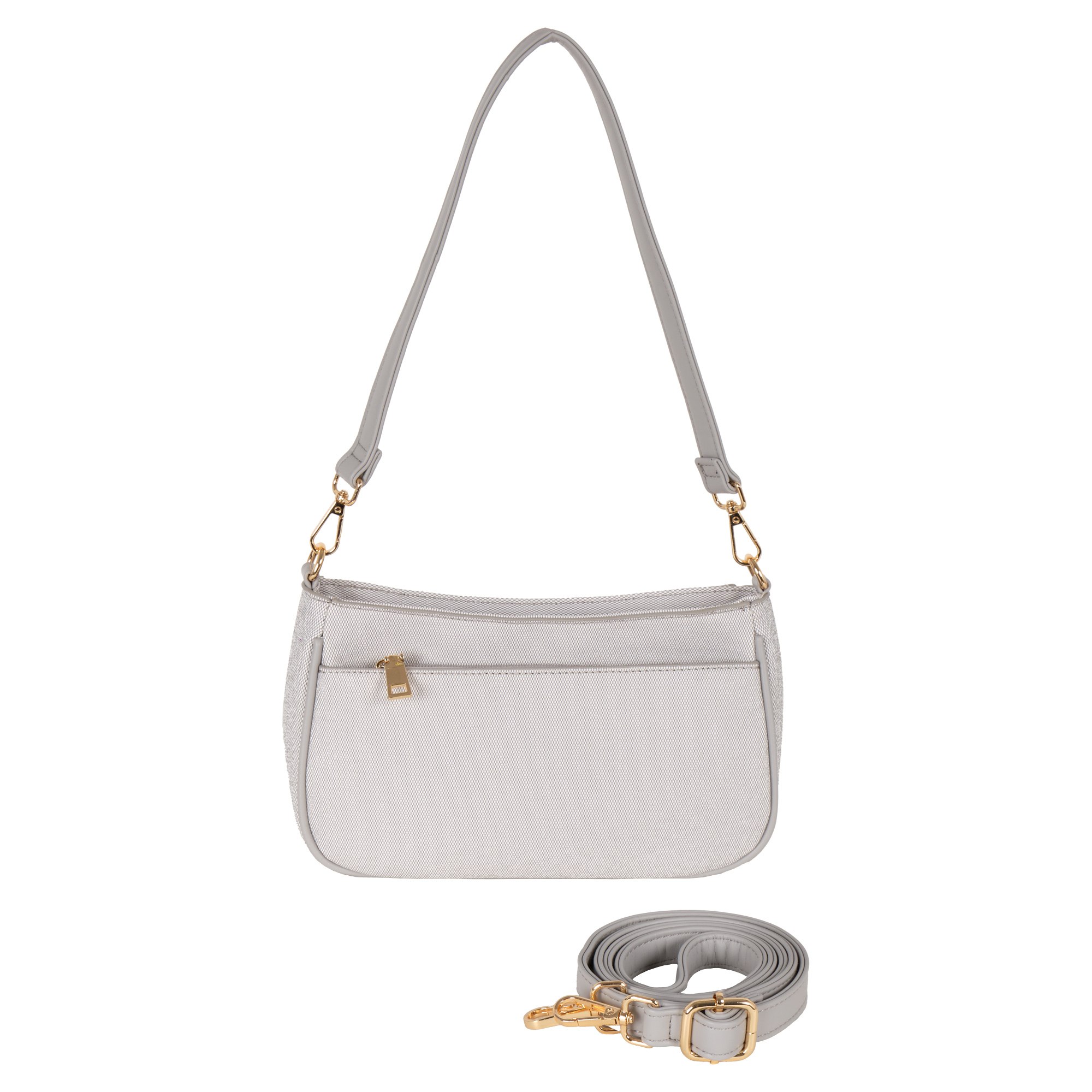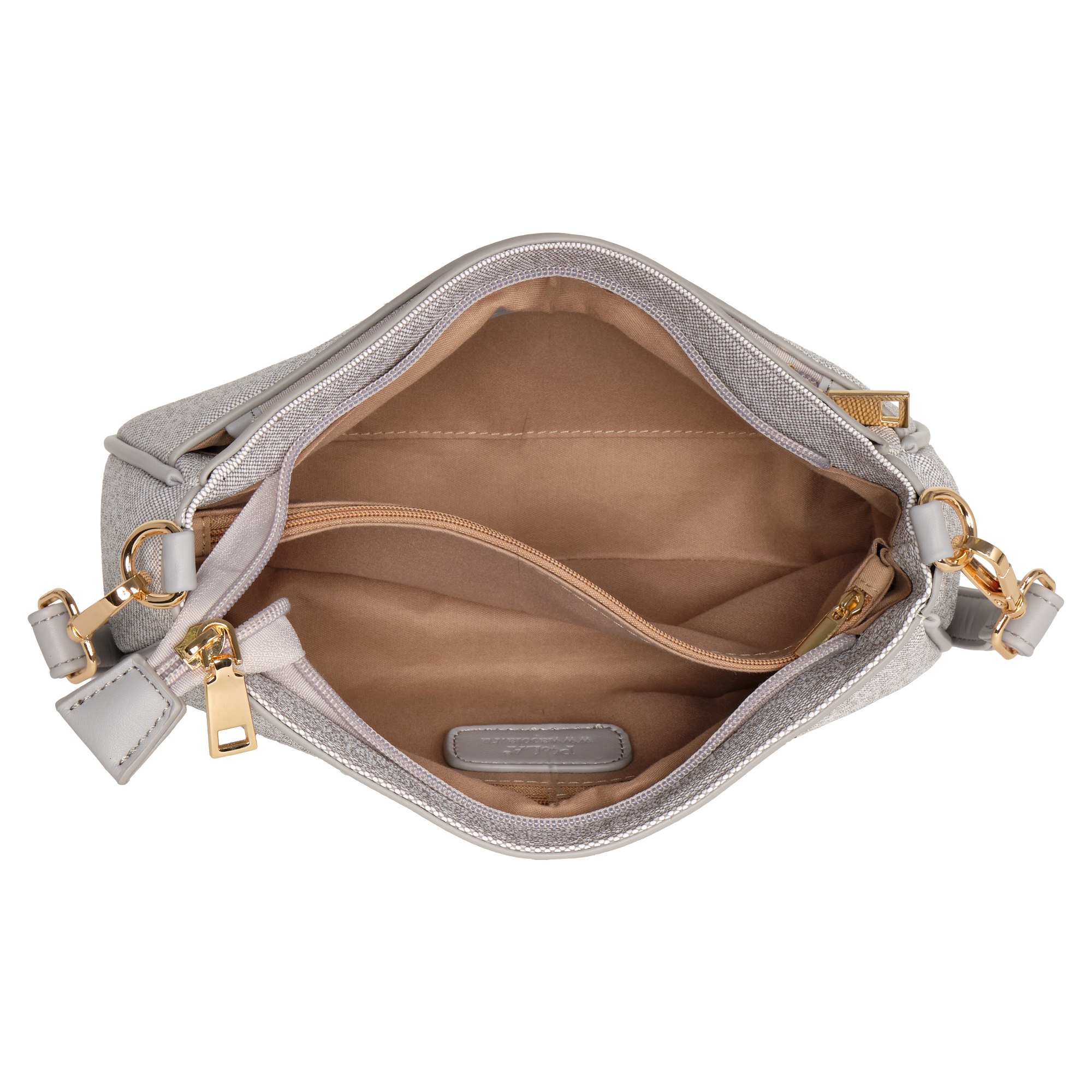 Небольшая вместительная женская сумочка кросс-боди фирмы POLA выполнена из экокожи (канвас). Основное отделение закрывается на молнию. Внутри два кармана на молнии и один открытый кармашек. Сзади сумки карман на молнии.  У данной модели два варианта переноски, съемный ремешок максимальная длина 132 см и съемная ручка высотой 26 см. Сумка через плечо идеальна для повседневных выходов и деловых встреч. Цвет фурнитуры-золото.
