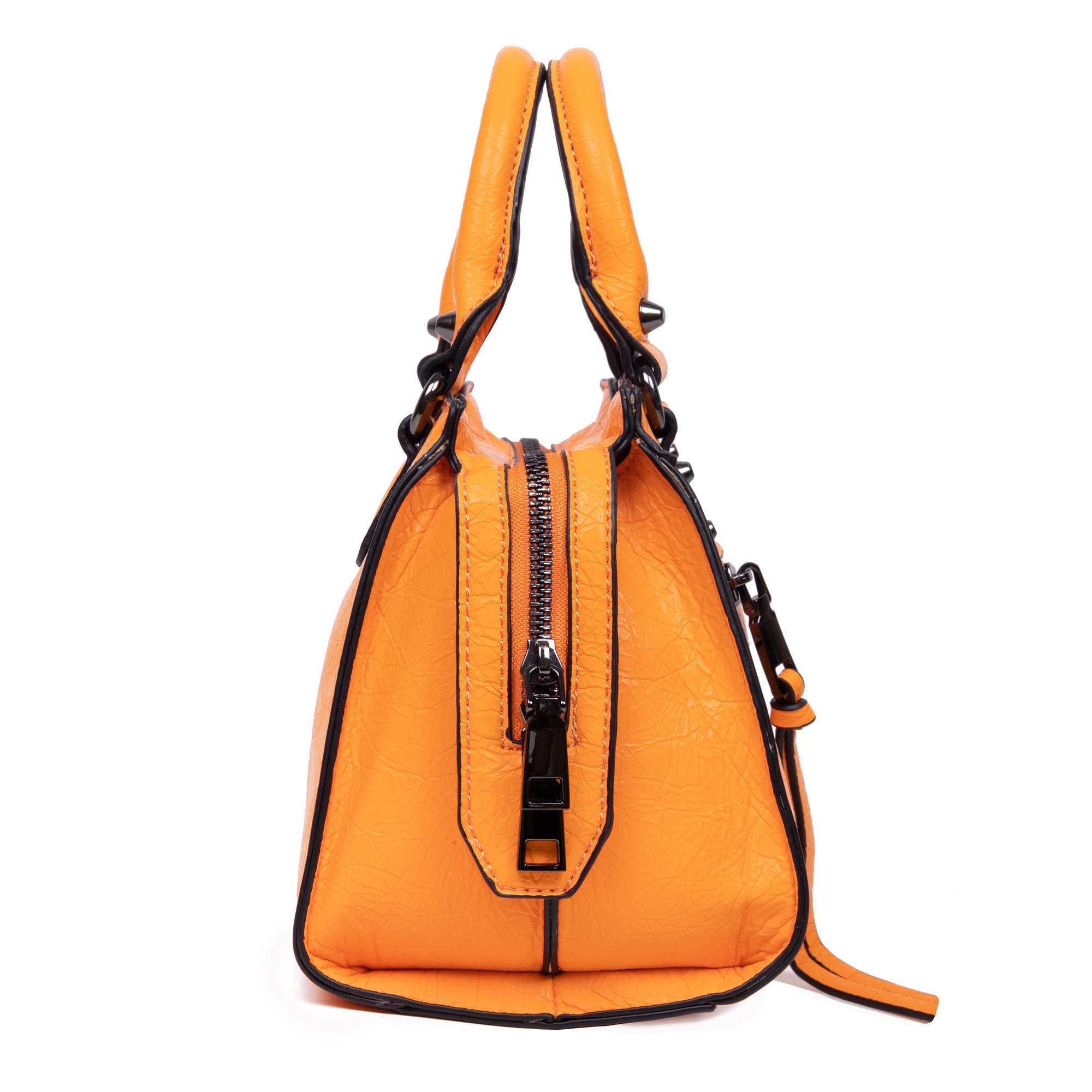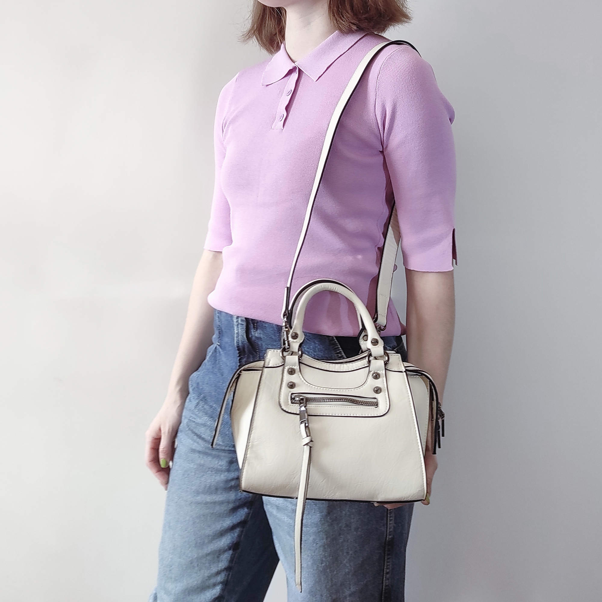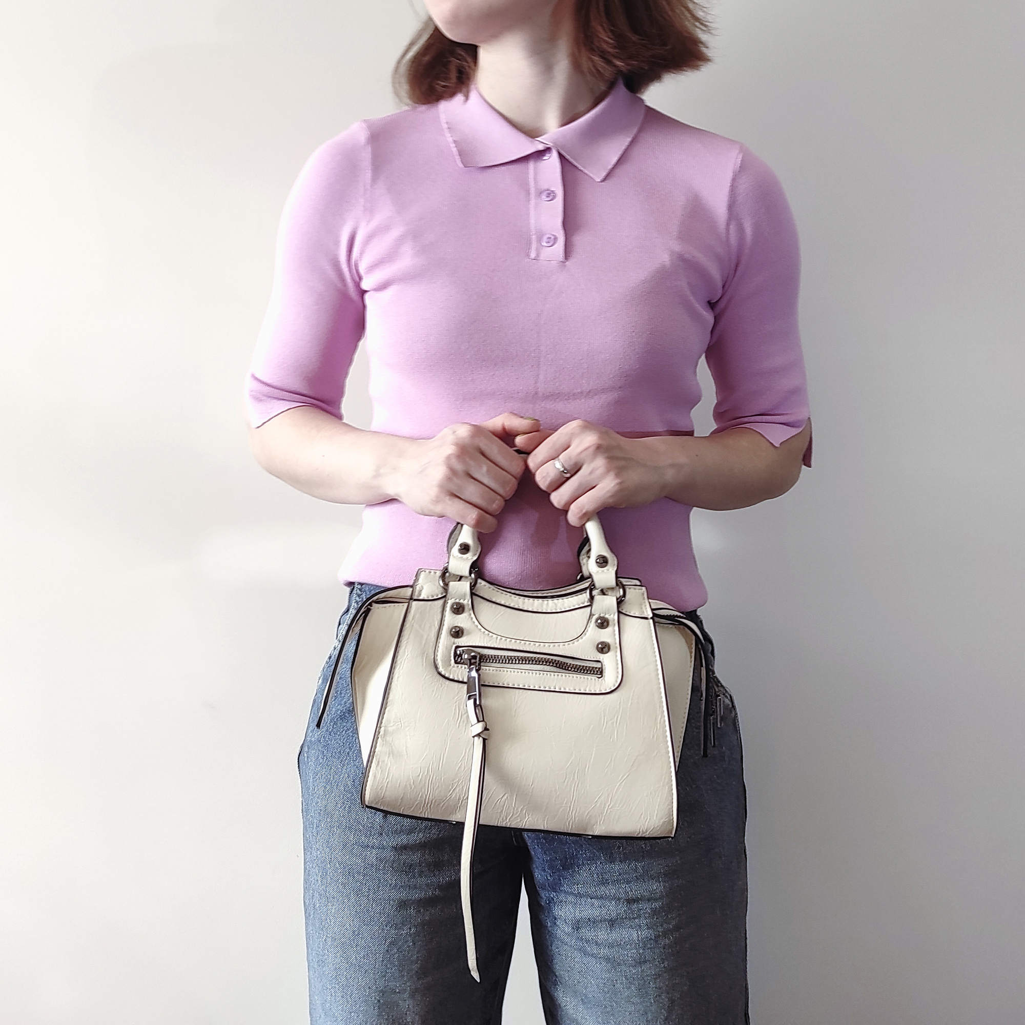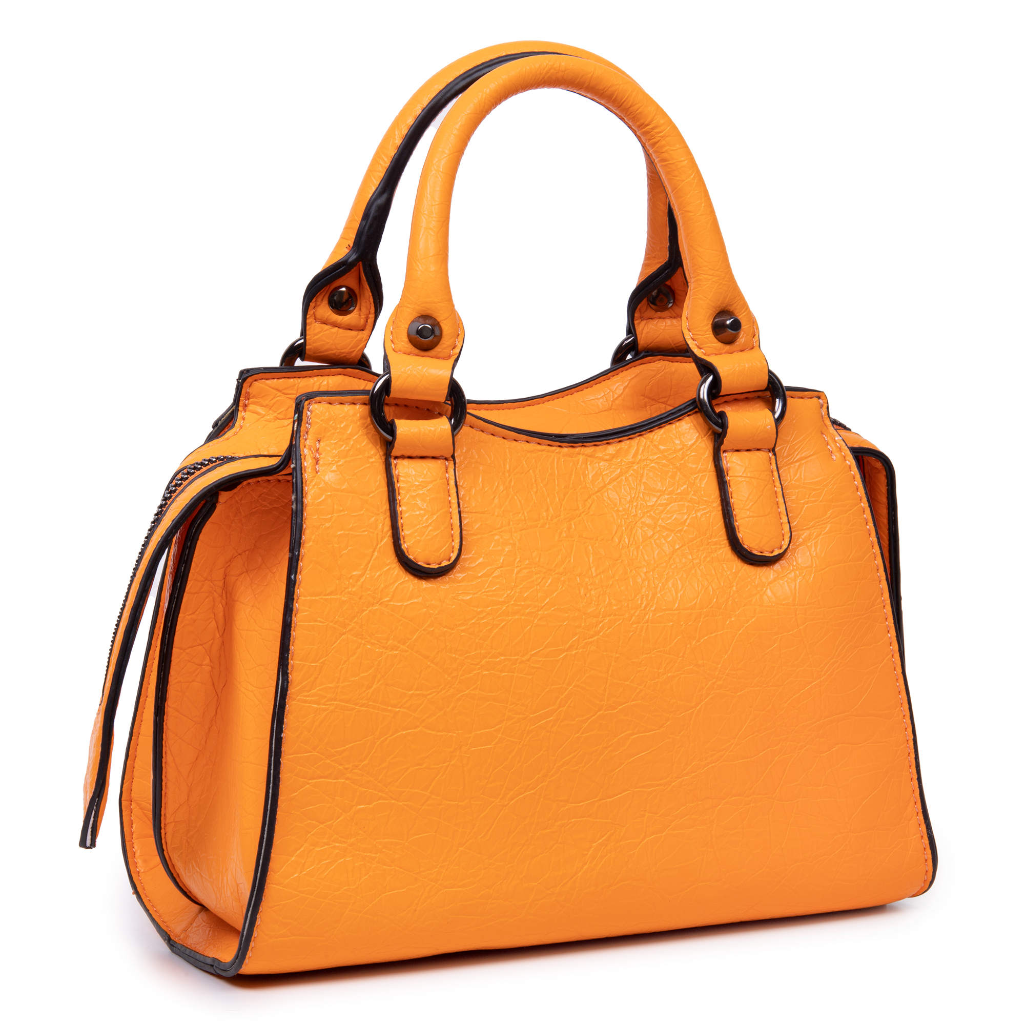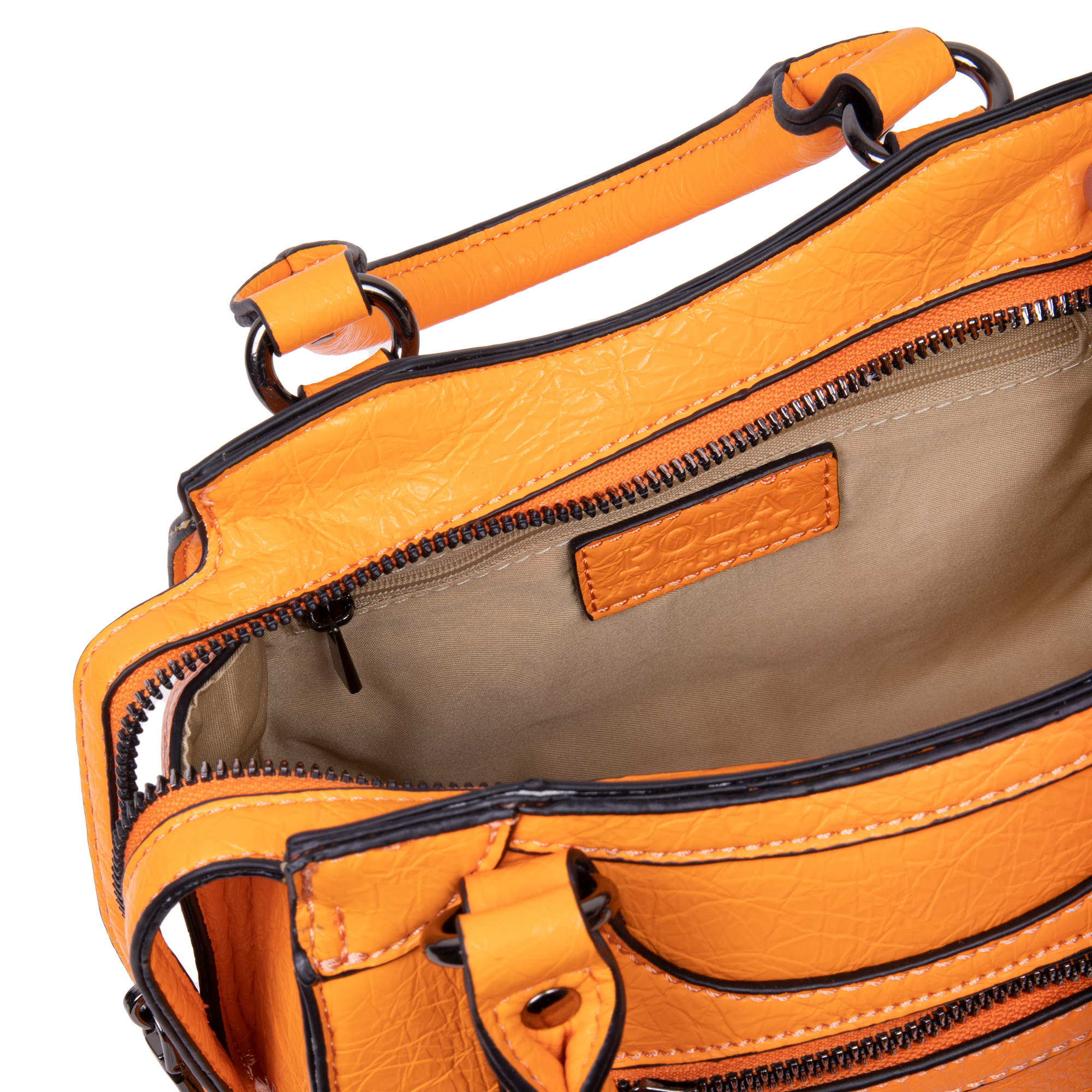 Стильная, яркая сумка фирмы Pola выполнена из экокожи и закрывается на металлическую молнию. Внутри основного отделения есть небольшой кармашек на молнии и один открытый карман для мелочей. Спереди модель украшена коротким ремешком и заклепками, есть накладной карман на молнии для ключей. Сумка прекрасно подойдёт женщинам, предпочитающим, яркий стиль. У сумки есть две ручки для переноски, высота которых 12 см и съёмный, нерегулируемый ремень, длина которого 96 см. Цвет фурнитуры-черный никель.