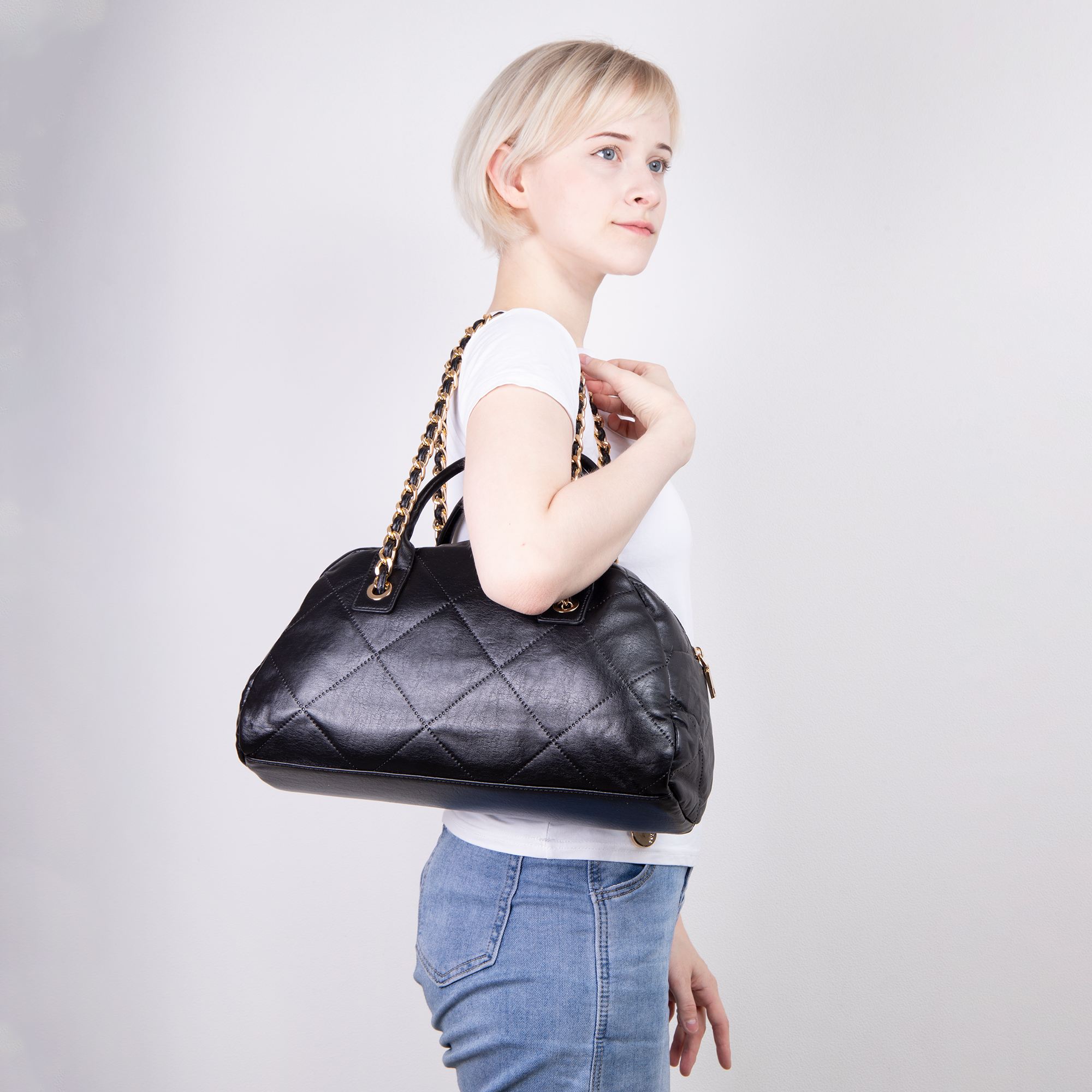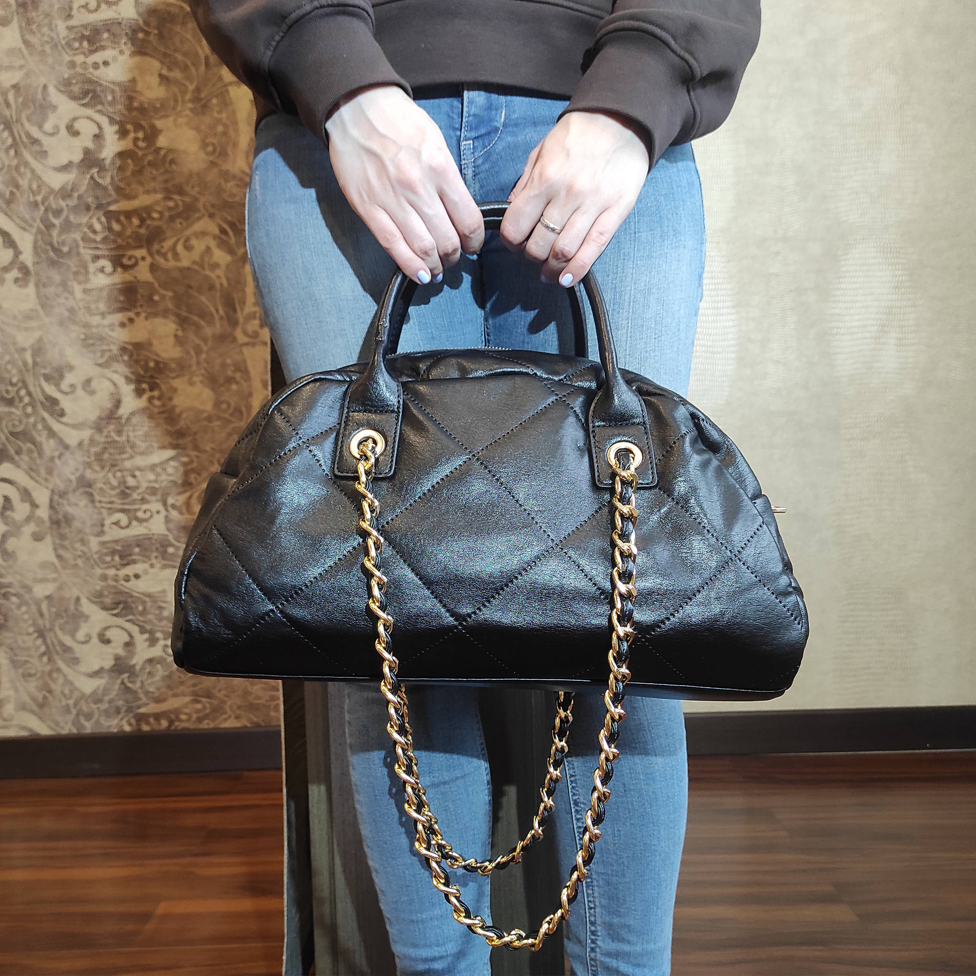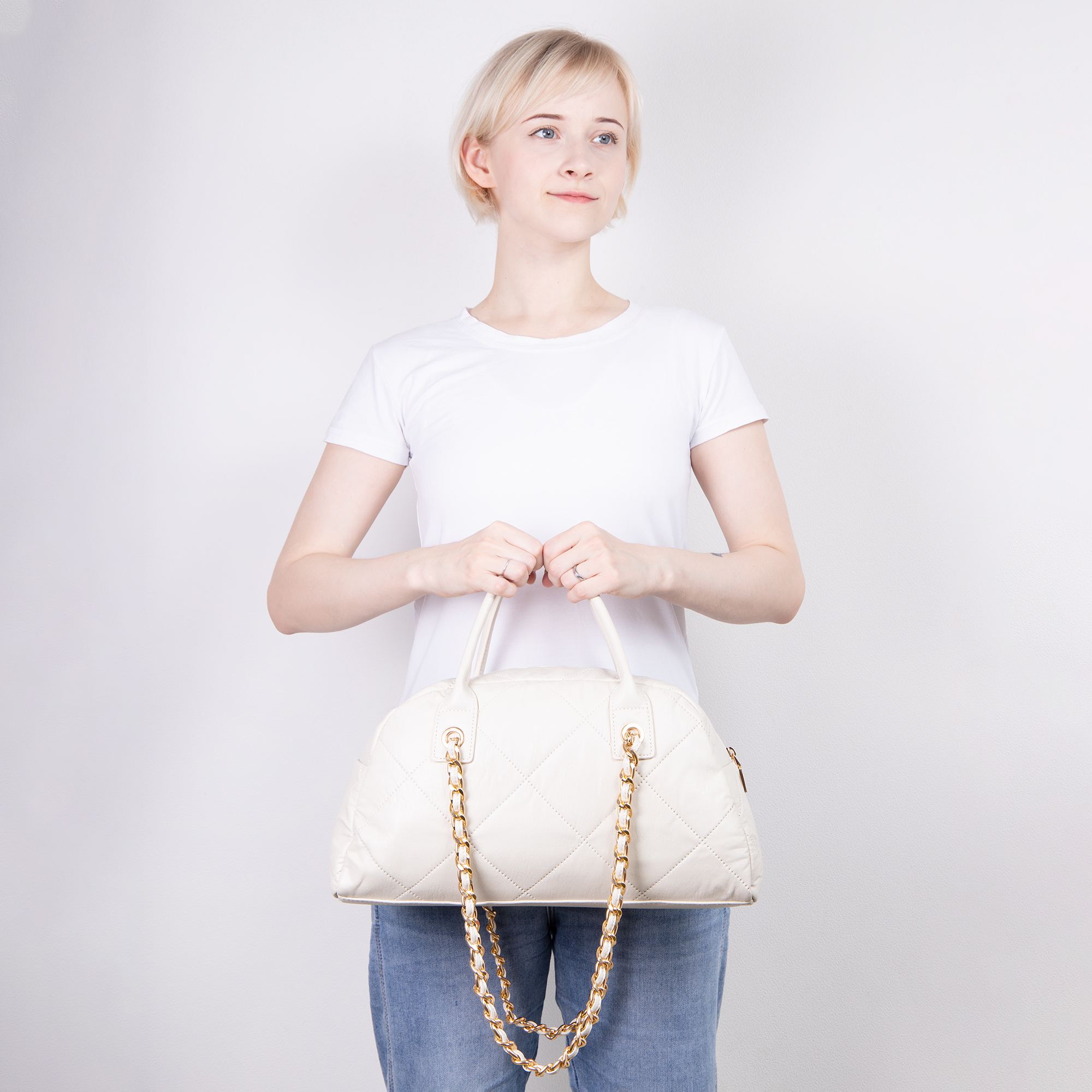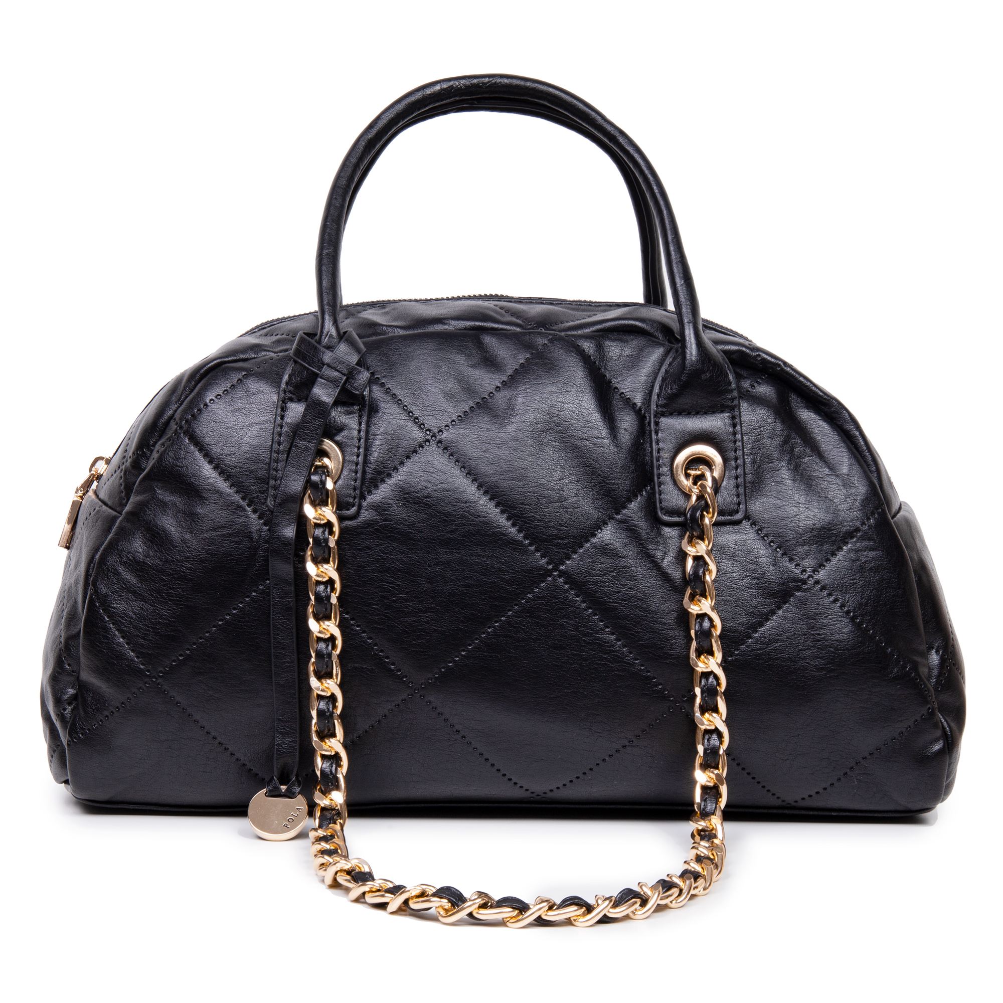 Стильная сумочка Pola выполнена из термостежки. Сумка состоит из одного основного отделения, которое закрывается на молнию. Внутри основного отделения есть кармашек на молнии и один открытый карман. Данная модель отлично подойдет для повседневного образа. У сумки четыре несъемных ручки, две коротких высота 12 см и две ручки из металлической цепочки высота 30 см. Цвет фурнитуры-золото.