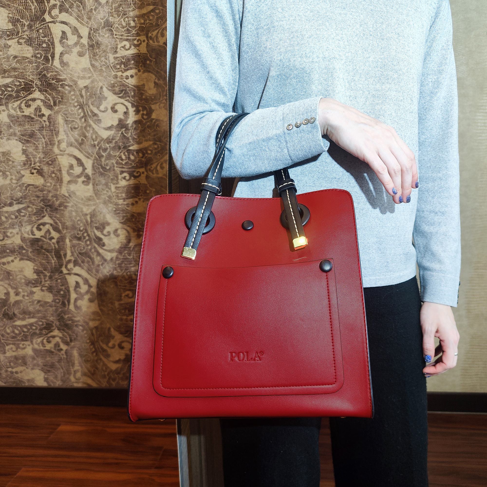 Стильная женская сумка фирмы Pola выполнена из экокожи и предназначена для повседневного использования. Основное отделение закрывается на металлическую молнию и разделено кармашком на молнии на два отделения. Внутри сумочки есть два кармана на молнии и два открытых. Отличительной особенностью данной модели является наличие с двух сторон боковых отделений в виде карманов на магнитной кнопке. Спереди сумки есть небольшой накладной карман. У сумки есть ручки для переноски, высота которых составляет 15 см, тонкий регулируемый ремешок длина которого- 112 см. Цвет фурнитуры-золото.
