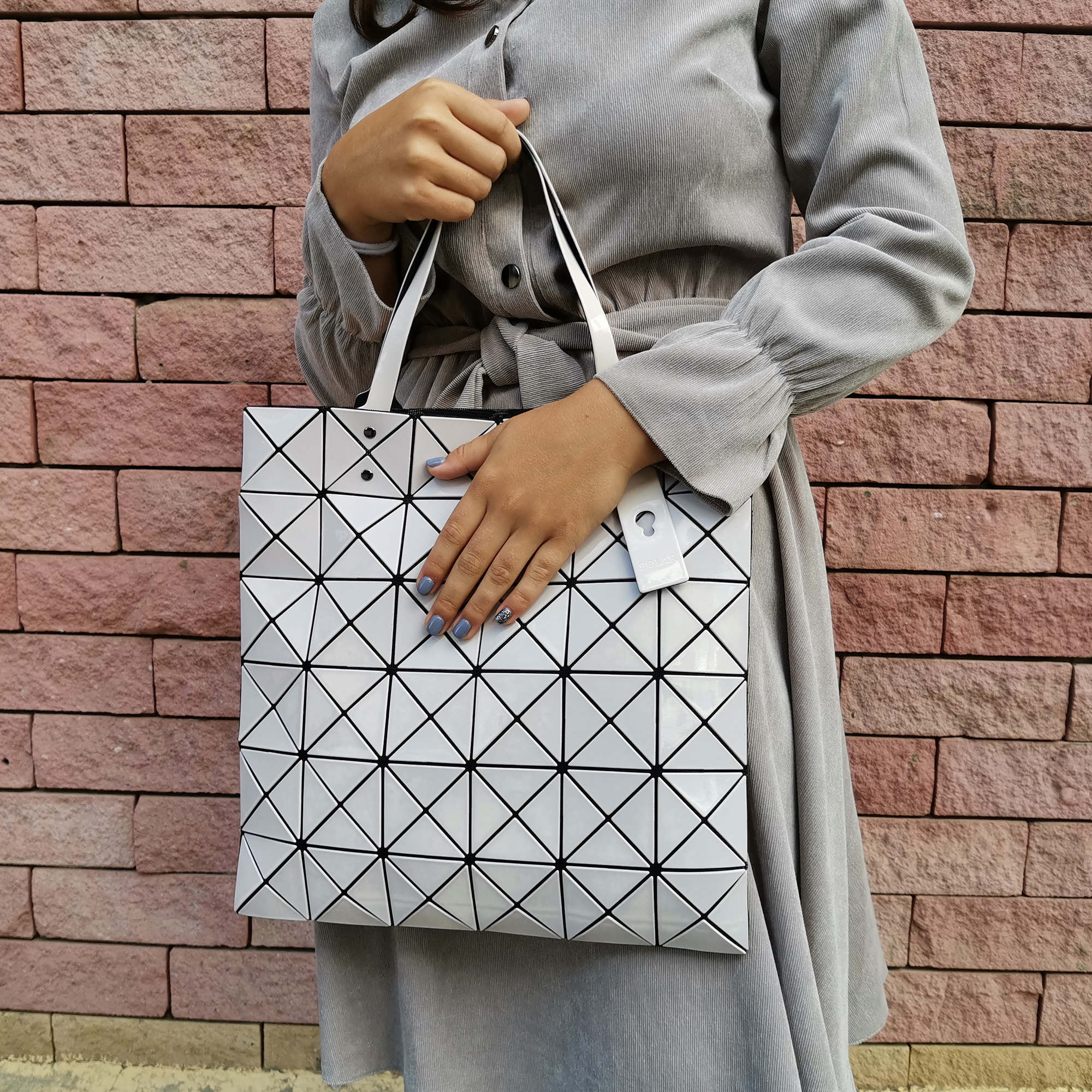 Ультрамодная ретро-сумка классической формы выполнена из мягкого силикона, благодаря этой особенности сумка может изменять форму (из плоской преобразуется в объёмную). Модель обладает глянцевой, ребристой поверхностью, которая переливается на свету, а также обтекаемой формой, что делает её невероятно уникальной и универсальной. Яркие цвета, впечатляющая эргономичность, неизбитый дизайн, высокое качество материала сумки станет совершенно незаменимой для активных, стильных, современных модниц, любящих ежедневный комфорт и желающих всегда быть в центре внимания. Основное отделение закрывается на пластиковую молнию, сумка имеет две ручки для переноски, высота которых составляет 16 см. Особенностью является то, что ручки можно регулировать по длине.