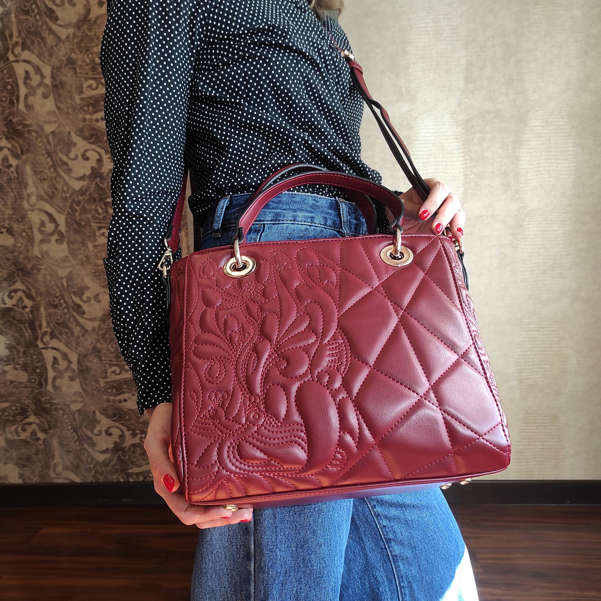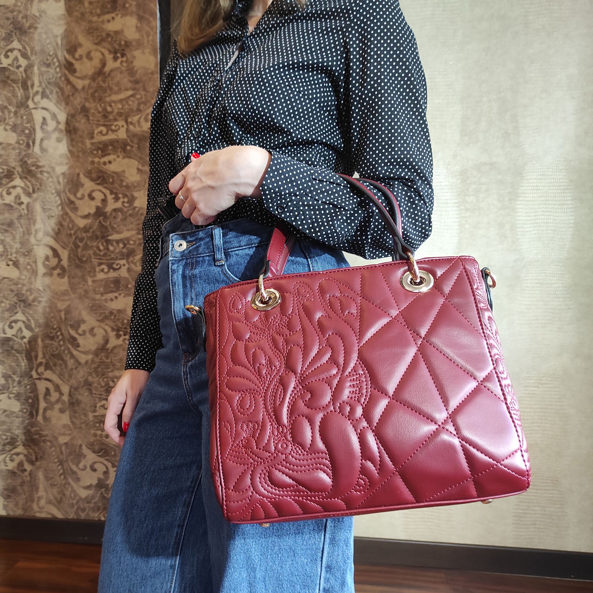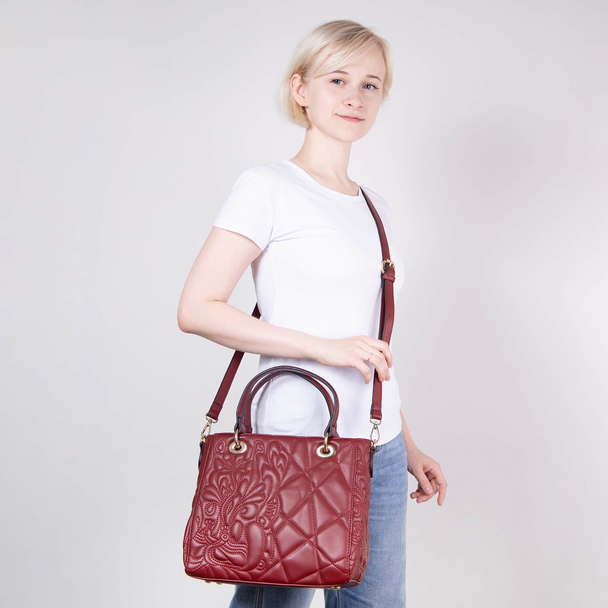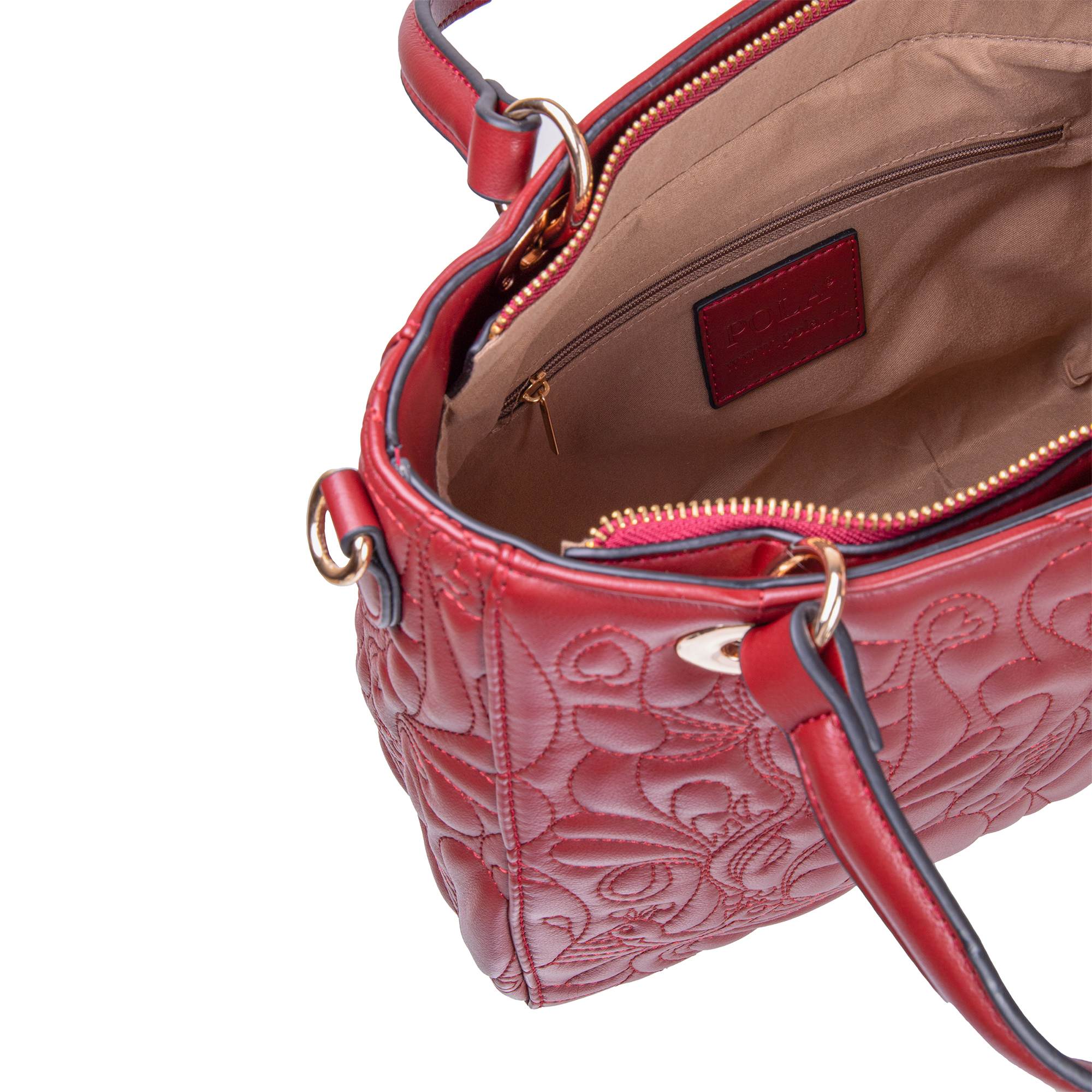 Стильная женская сумка актуальных расцветок фирмы Pola выполнена из экокожи и по всему периметру украшена рельефной отстрочкой. Основное отделение закрывается на металлическую молнию, внутри есть карман на молнии и два открытых кармана для мелочей. Сзади сумки присутствует врезной карман на молнии. Сумку можно переносить с помощью двух ручек, высота которых составляет 15 см, а также на плече с помощью съёмного регулируемого ремня, длина которого составляет 130 см. Данная модель очень элегантна и великолепно подходит для ежедневного использования. Цвет фурнитуры-золото.