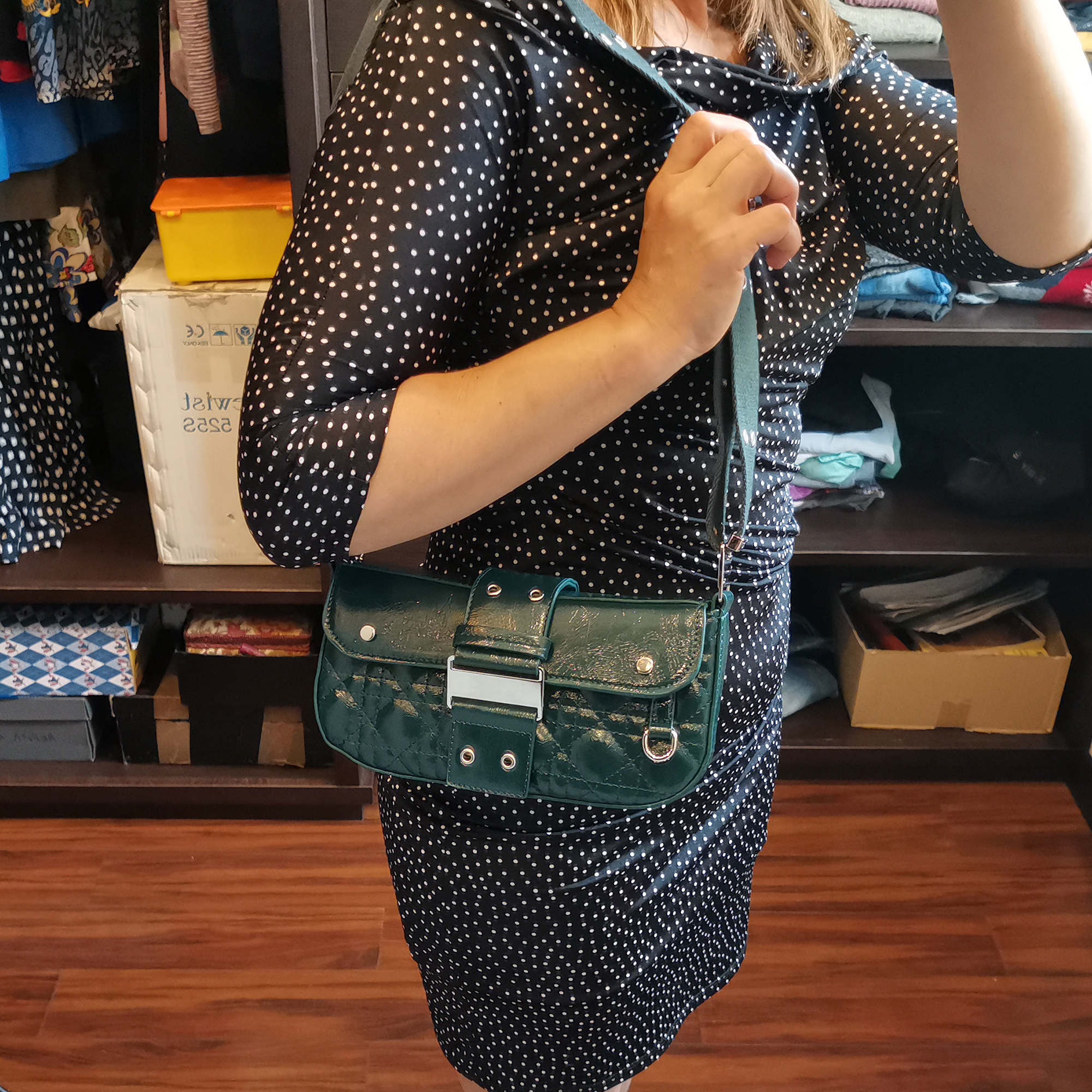 Миниатюрная сумочка фирмы Pola выполнена из экокожи со стеганым узором. Аксессуар закрывается магнитной кнопкой, внутренний карман застегивается молнией. В основном отделении карман на молнии для карточек, ключей и один открытый кармашек для телефона. Сзади сумки открытый карман. Отлично подойдет для повседневного ношения. Длина ручки 102 см. Цвет фурнитуры-серебро.