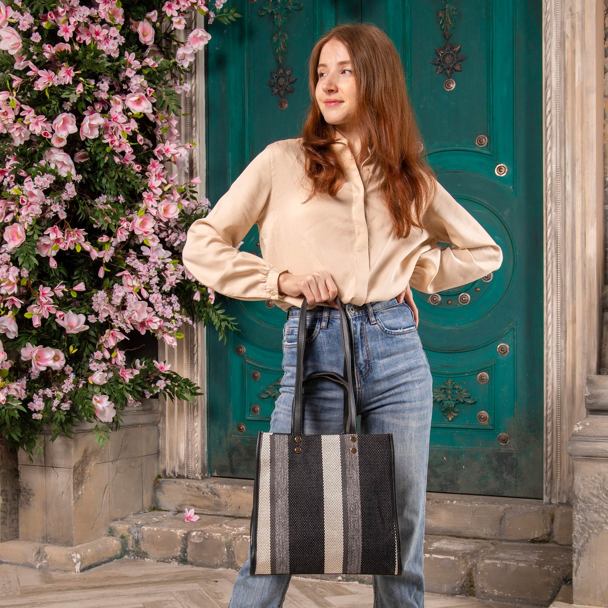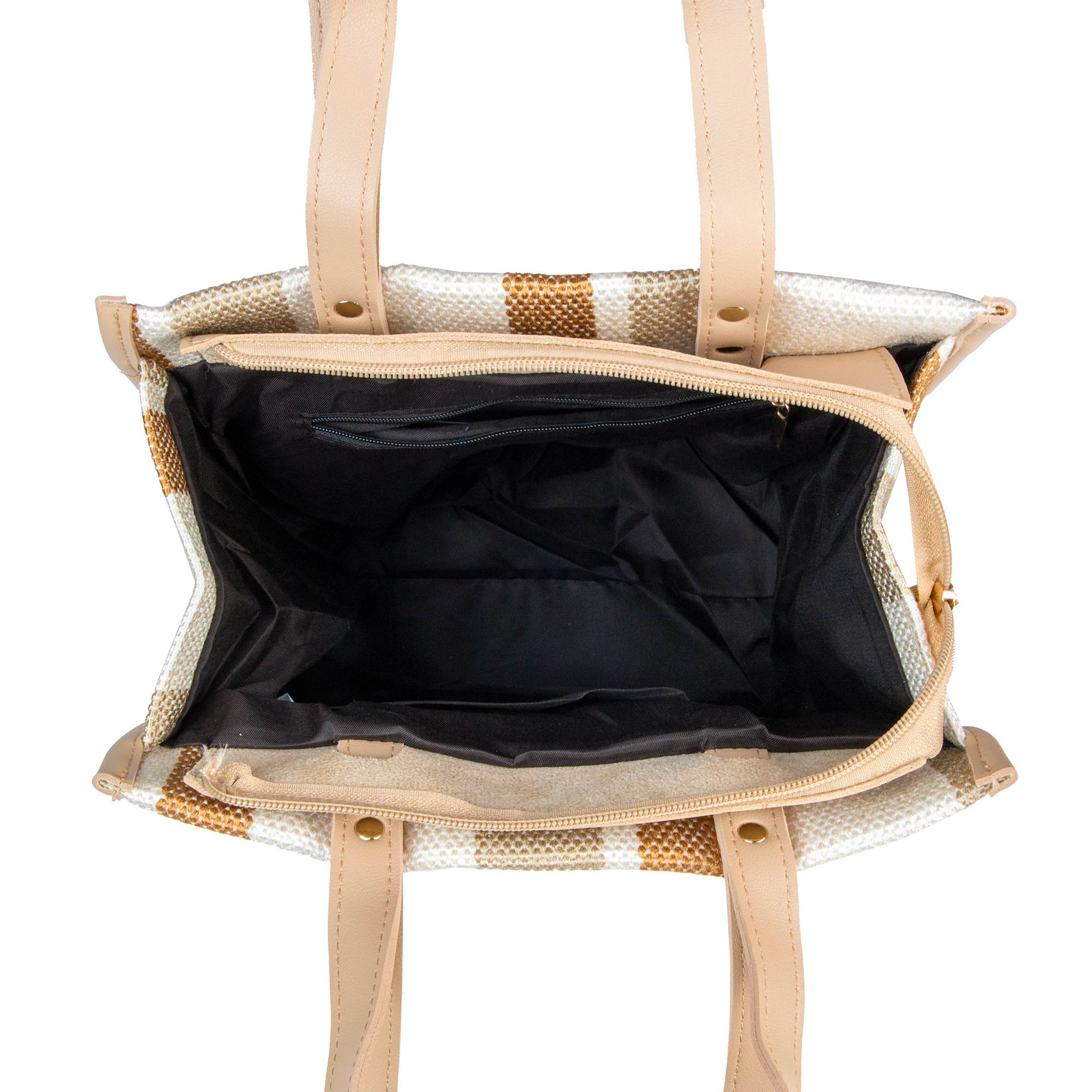 Современная оригинальная сумка фирмы Pola несомненно дополнит ваш образ. Выполнена из текстильного материала с вставками из искусственной кожи, внутри текстильная подкладка. Модель ярких цветов, жёсткой формы с широким дном, имеет четыре ручки для переноски. Высота ручек 18 см и 34 см. Сумка с одним отделением на молнии, внутри дополнительные кармашки один на молнии и один открытый. Цвет фурнитуры-золото.