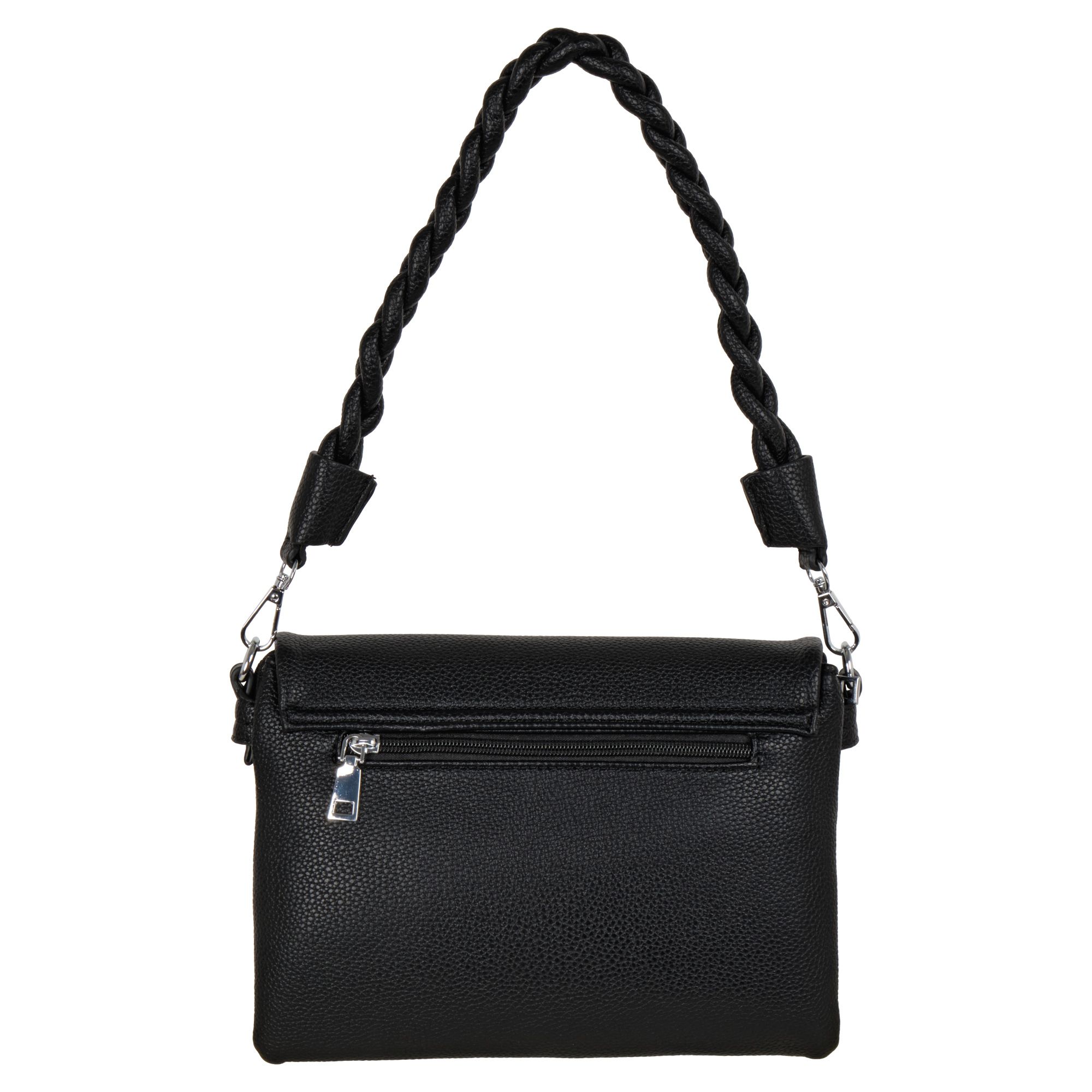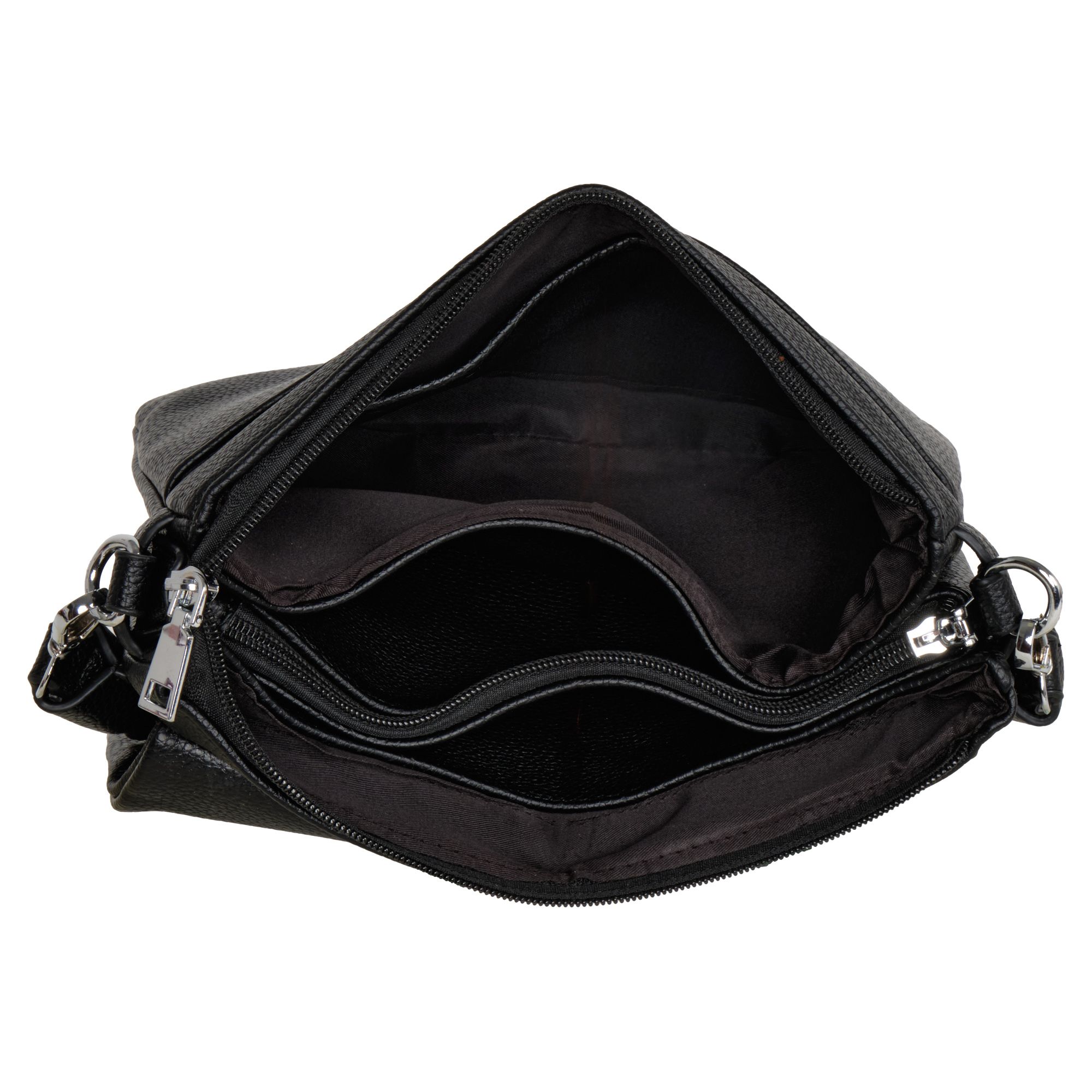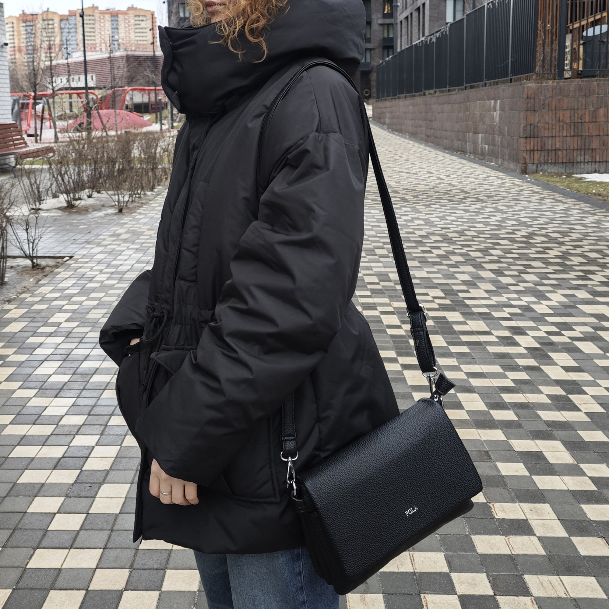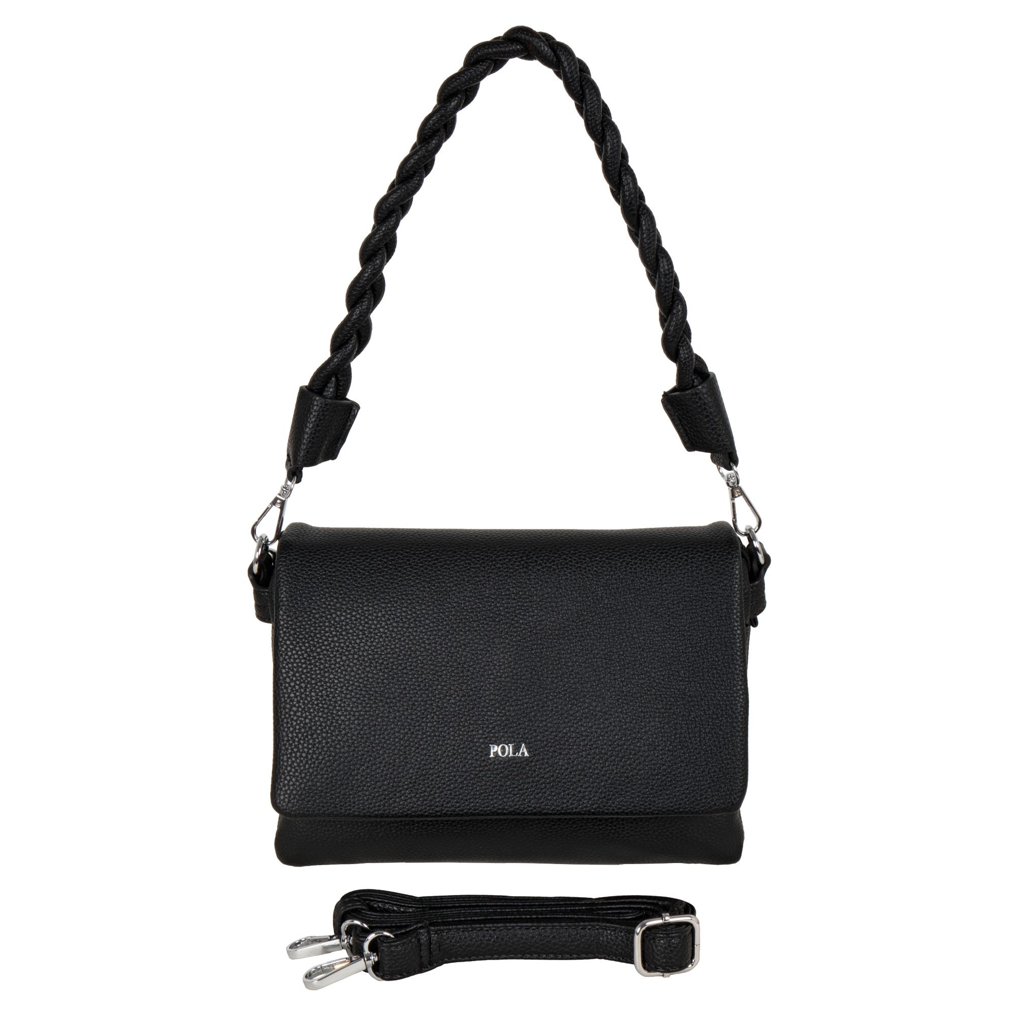 Стильная повседневная сумка фирмы Pola выполненная из мягкой экокожи, представляет собой идеальный аксессуар для современной женщины. Она обладает двумя просторными отделениями, каждое из которых защищено собственной молнией. Внутри находится дополнительный карман для мелких предметов. Сзади небольшой карман на молнии. Модель среднего размера выполнена в черном цвете, что делает её универсальной и подходящей к любому наряду. В комплекте съемный плечевой ремень длиной 130 см. Сумочка кросс-боди идеально подойдёт для повседневного использования. Цвет фурнитуры-серебро.