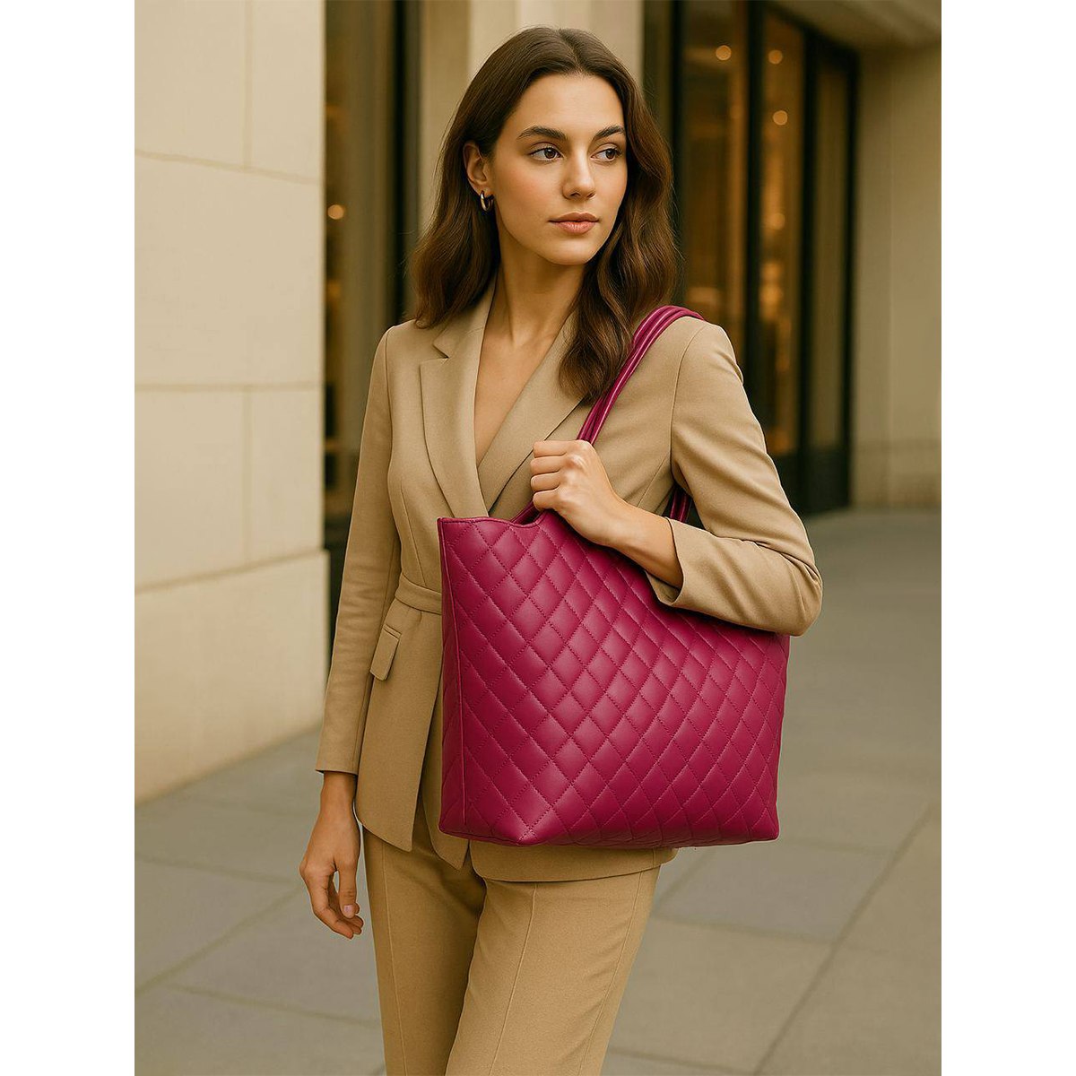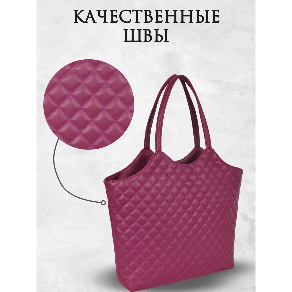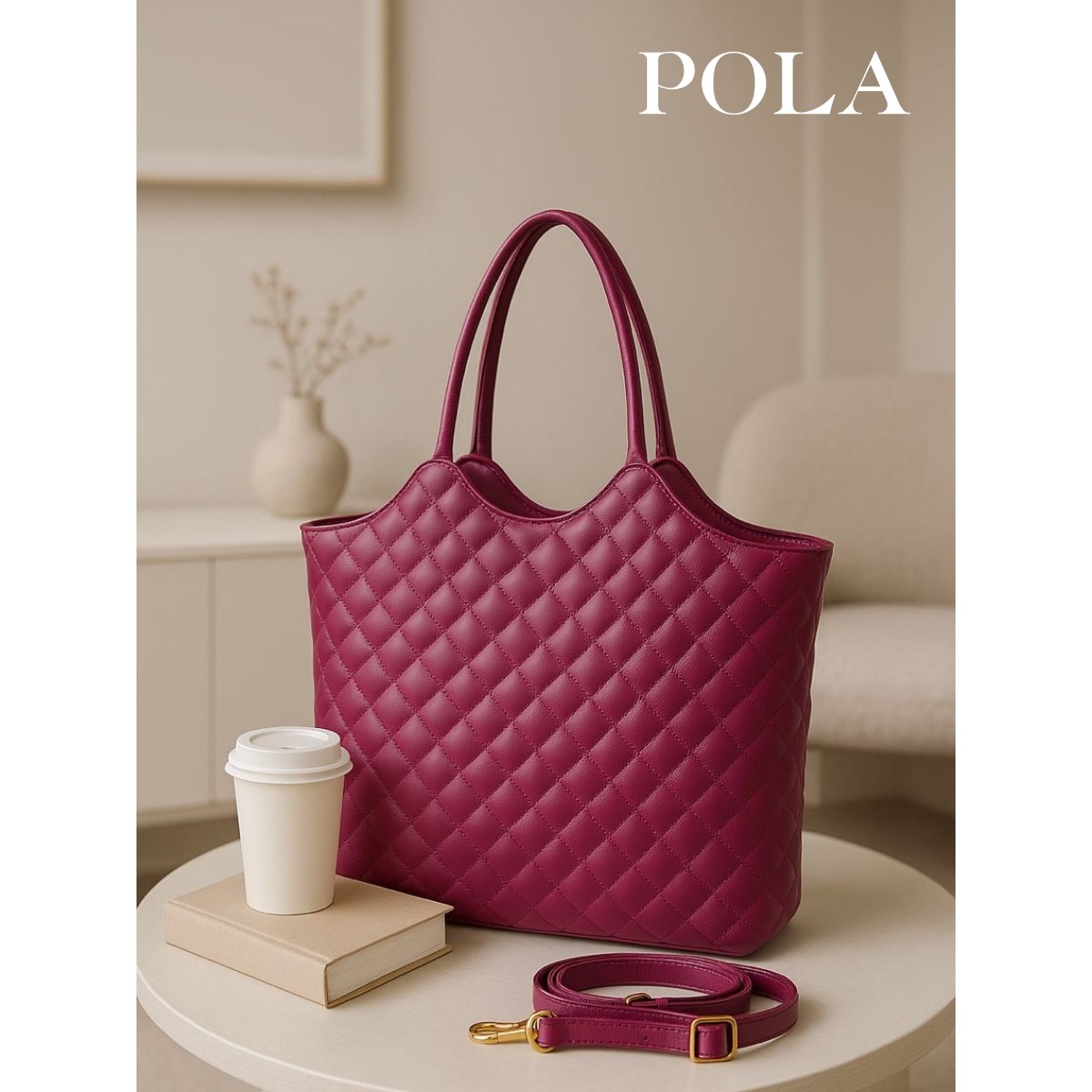 Вместительная стеганая женская сумка Pola выполнена из экокожи. Данная модель продолжает удерживать лидирующие позиции среди трендов! Данную модель можно классифицировать как-сумка тоут, сумка шоппер, сумка хобо. Основное отделение закрывается на молнию. Внутри два кармана на молнии и открытый кармашек. Вмещает формат А4. Сумку можно переносить с помощью двух ручек, высота которых составляет 26 см, а также на плече с помощью съёмного регулируемого ремня, длина которого составляет 134 см. Цвет фурнитуры-золото.