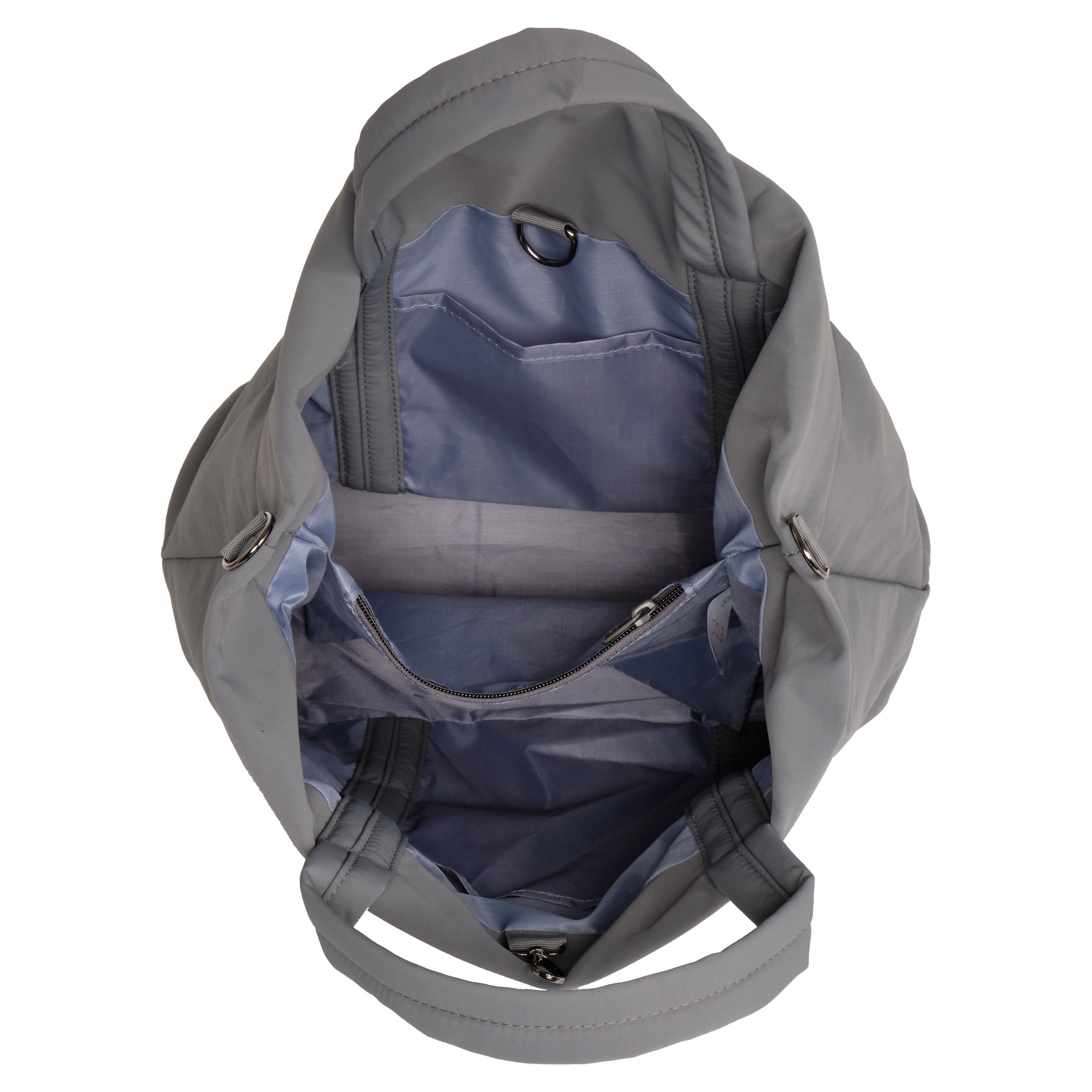 Городская сумка-шоппер фирмы Pola выполнен из нейлона. Модель имеет вместительное одно отделение, закрывающееся на карабин. Внутри рюкзака, есть два небольших открытых кармашка. Модель имеет две ручки высота 14 см для переноски и лямки, регулируемый по длине 108 см.  В этой модели найдется место для всего самого необходимого в повседневной жизни.