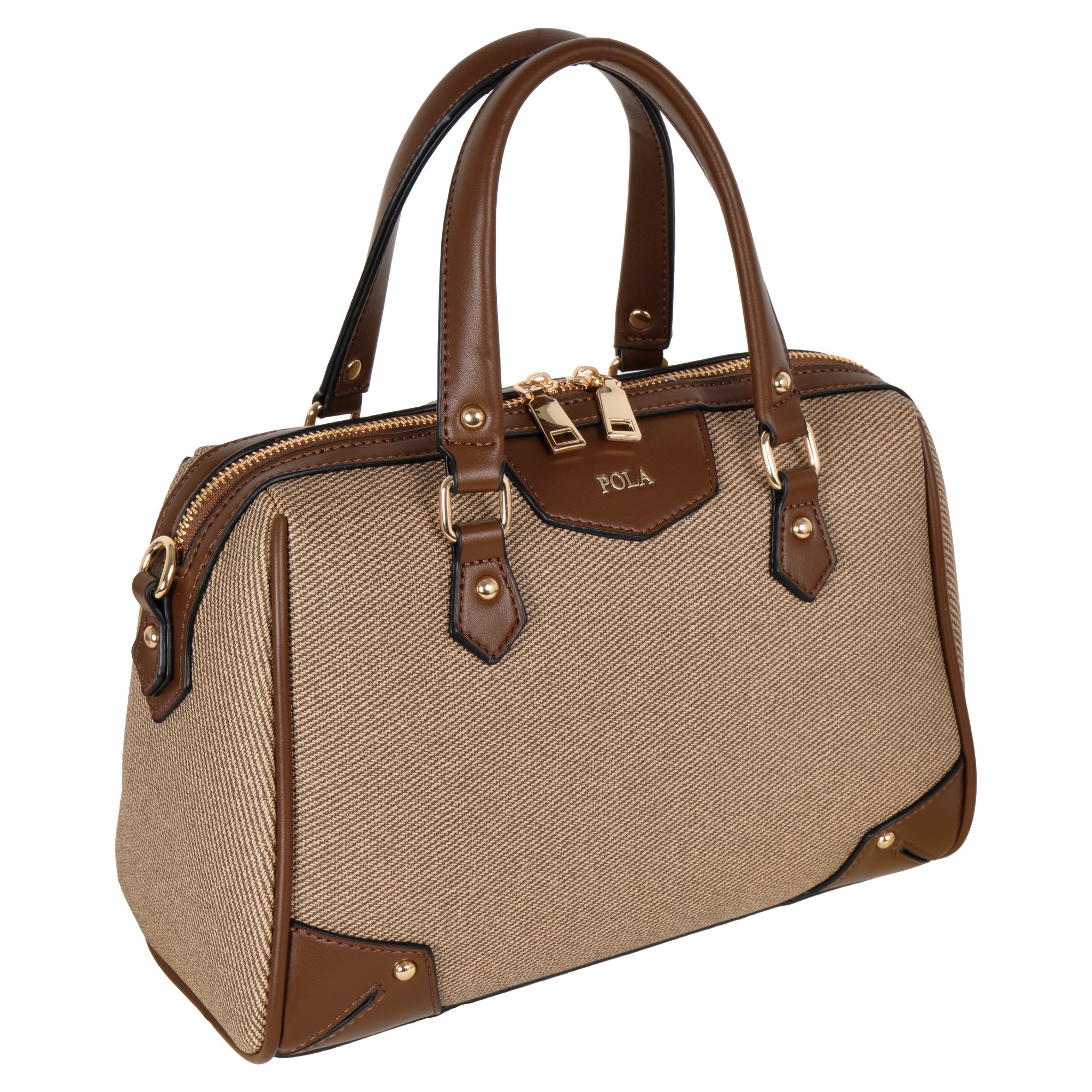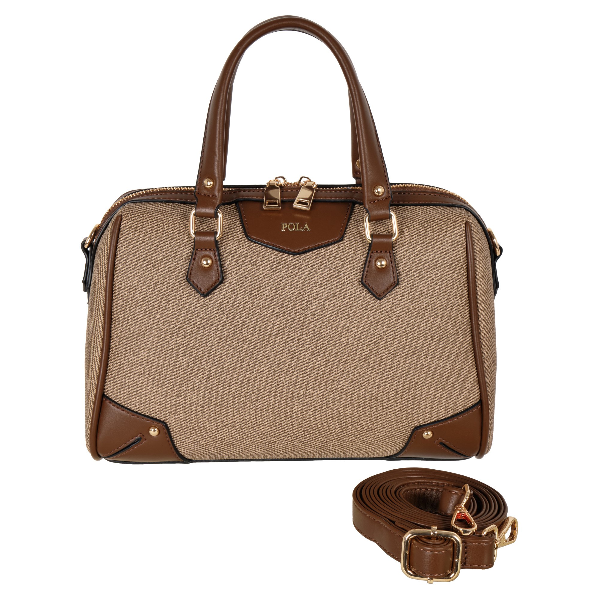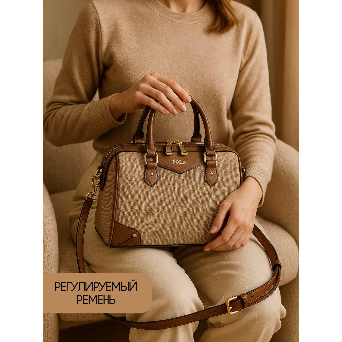 Сумка женская фирмы POLA выполнена из экокожи (канвас). Сумка прекрасно подойдет всем, она совмещает в себе элегантность и функциональность. Идеальный выбор для работы и школы. Основное отделение закрывается на молнию. Внутри один карман на молнии и один открытый кармашек. Максимальная длина съемного регулируемого ремня составляет 134 см, высота ручки 13 см. Цвет фурнитуры-золото.
