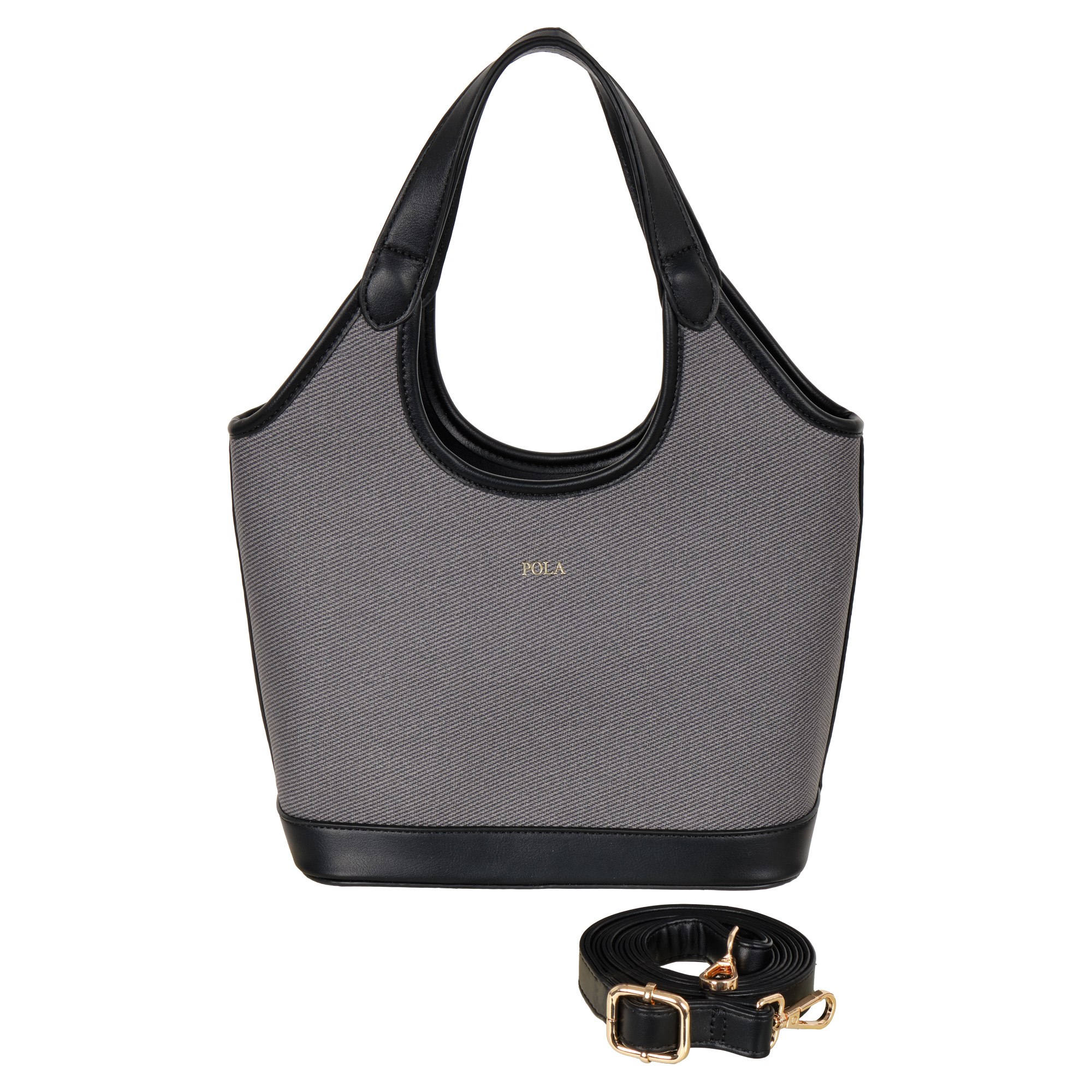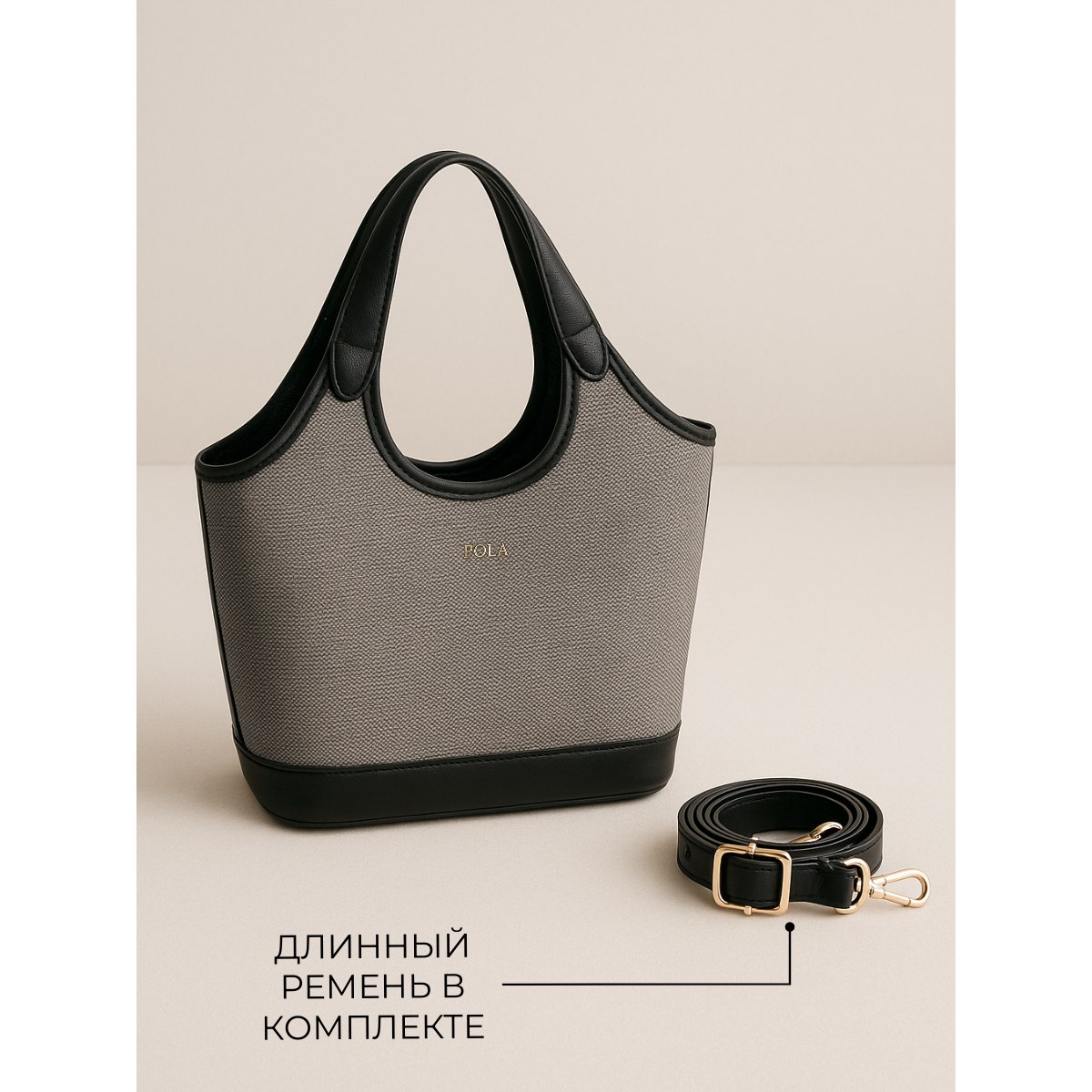 Женская сумка Pola выполнена из экокожи (канвас). Данная модель продолжает удерживать лидирующие позиции среди трендов! Основное отделение закрывается на молнию. Внутри один карман на молнии и открытый кармашек. Сумка отлично держит форму. Сумку можно переносить с помощью двух ручек, высота которых составляет 20 см, а также на плече с помощью съёмного регулируемого ремня, длина которого составляет 136 см. Цвет фурнитуры-золото.