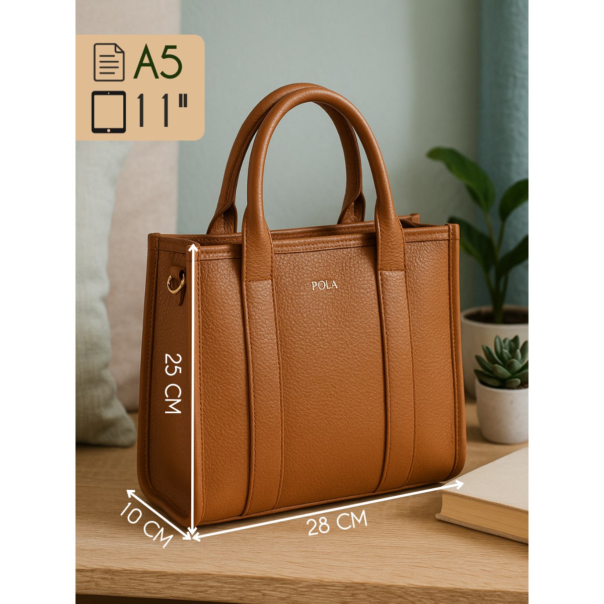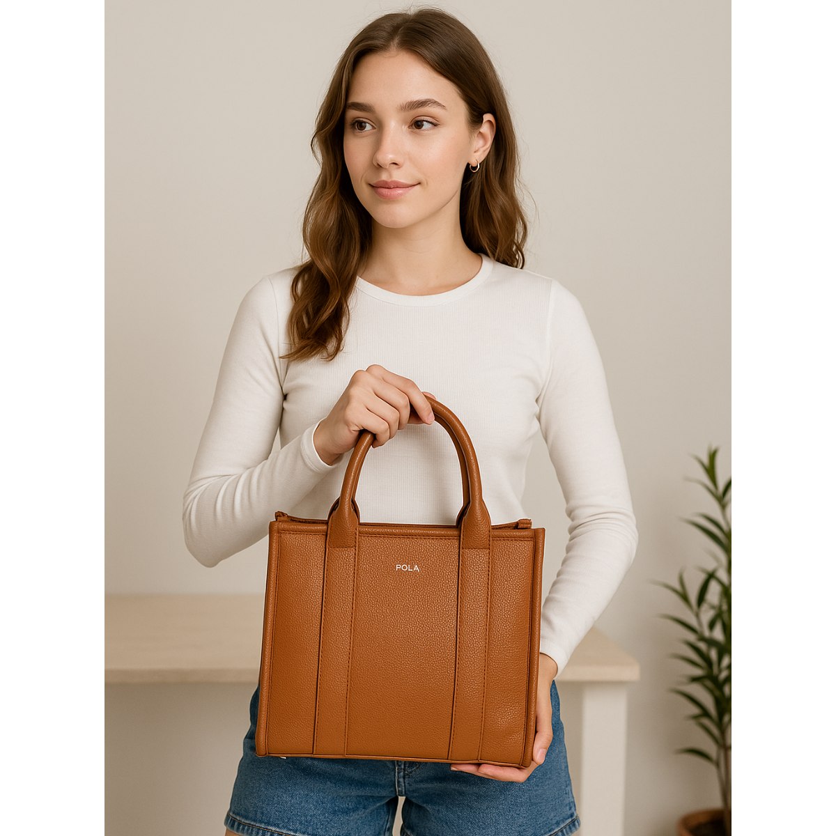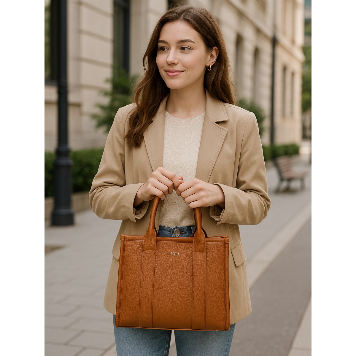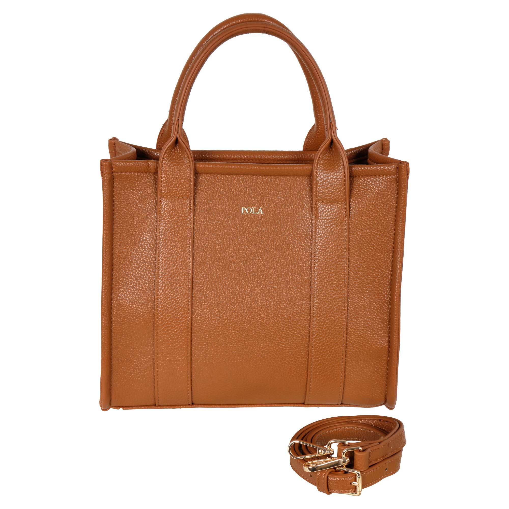 Стильная женская сумка фирмы POLA выполнена из экокожи. Идеальный аксессуар для повседневной жизни. Подходит для городских прогулок или деловых встреч. Основное отделение закрывается на молнию. Внутри один карман на молнии и один открытый кармашек. Максимальная длина съемного регулируемого ремня составляет 132 см, высота ручки 14 см. Цвет фурнитуры-золото.