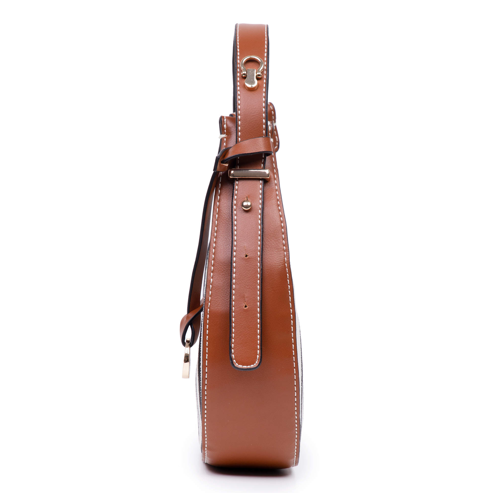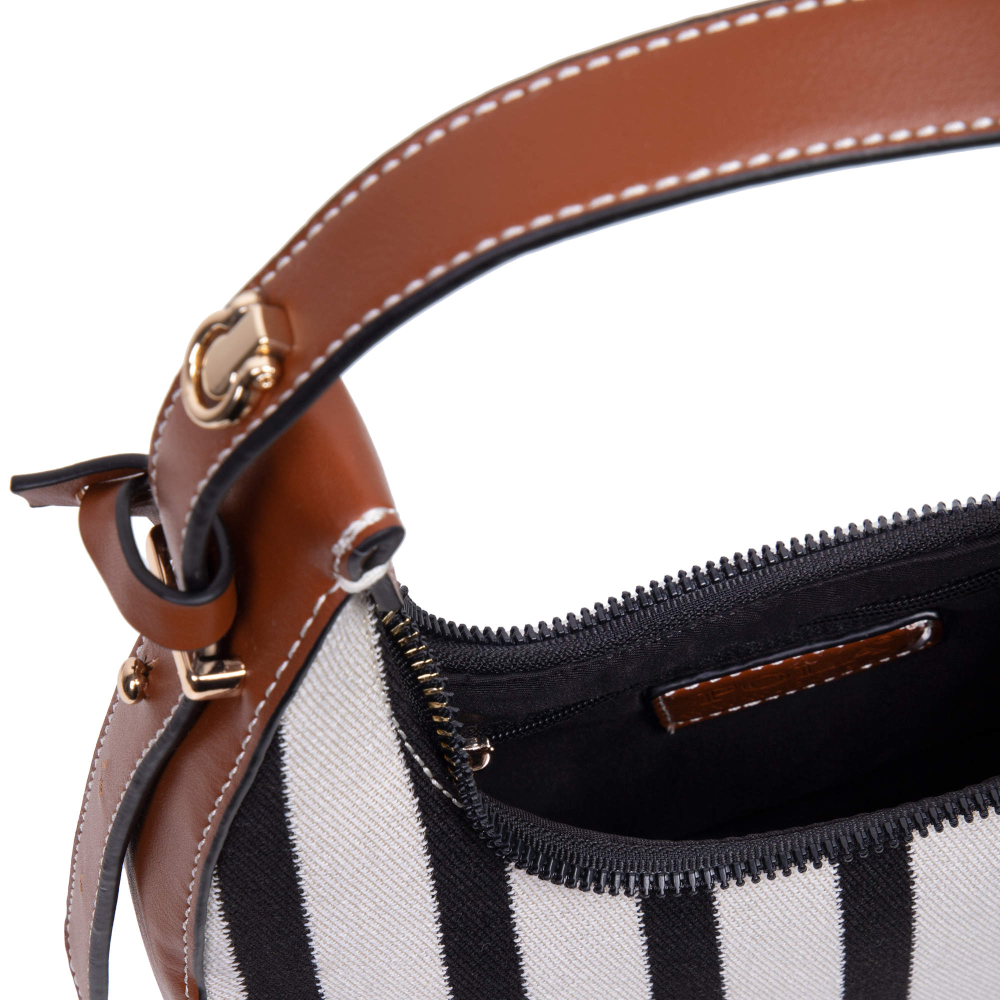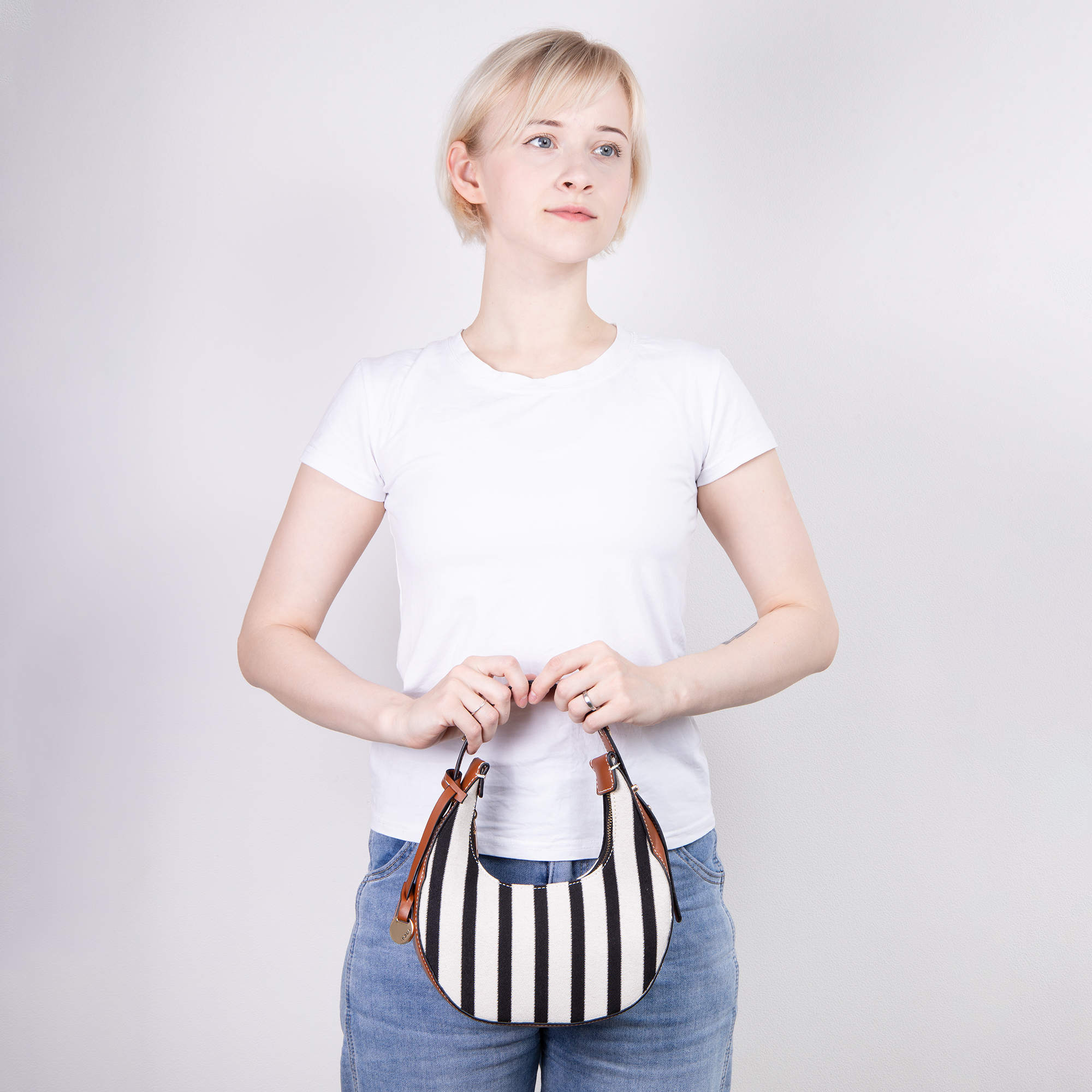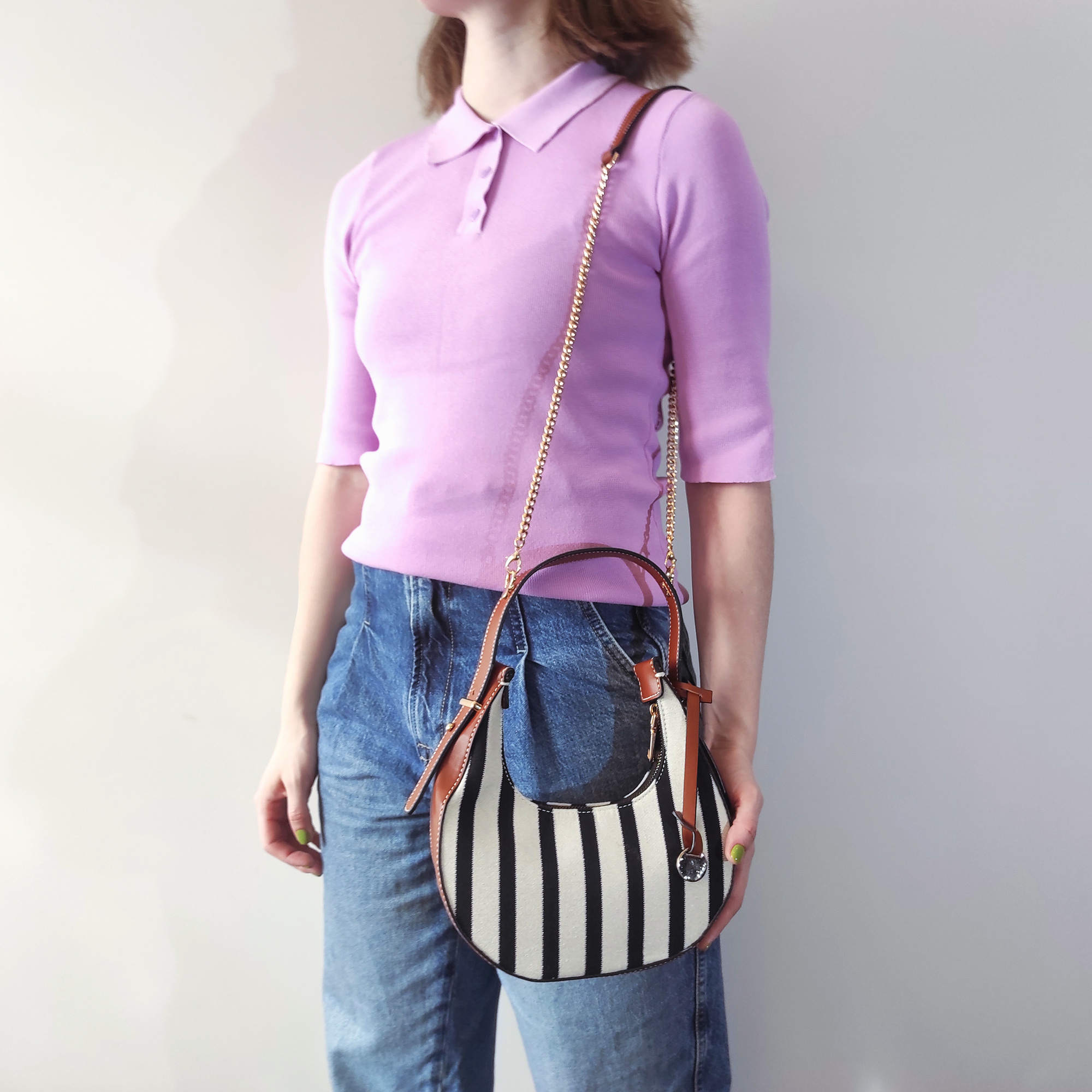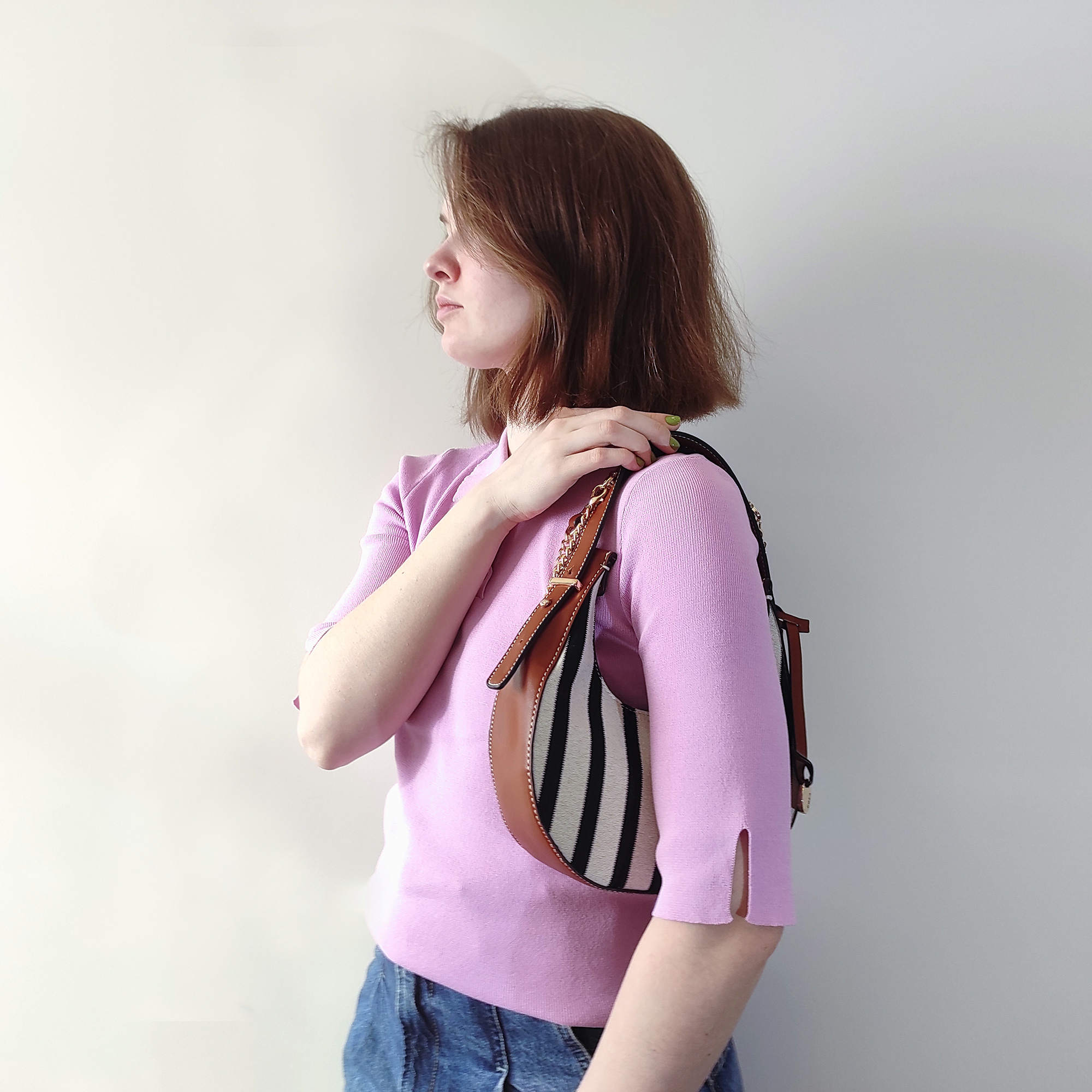 Стильная сумка хобо фирмы POLA – выполнена из полиэстера и экокожи, одна из самых трендовых и востребованных сумочек. Сумка по размеру маленькая, но компактная, подойдёт как для выхода в театр, ресторан, так и для прогулки в будние дни в качестве повседневной сумки в виде полумесяца. Основное отделение закрывается на молнию. Внутри есть один карман на молнии и один открытый кармашек.  У данной модели два варианта переноски, съемная металлическая цепь, очень легкая высота 57см и съемный, регулируемый ремешок из экокожи, высота 24см. Цвет фурнитуры-золото.