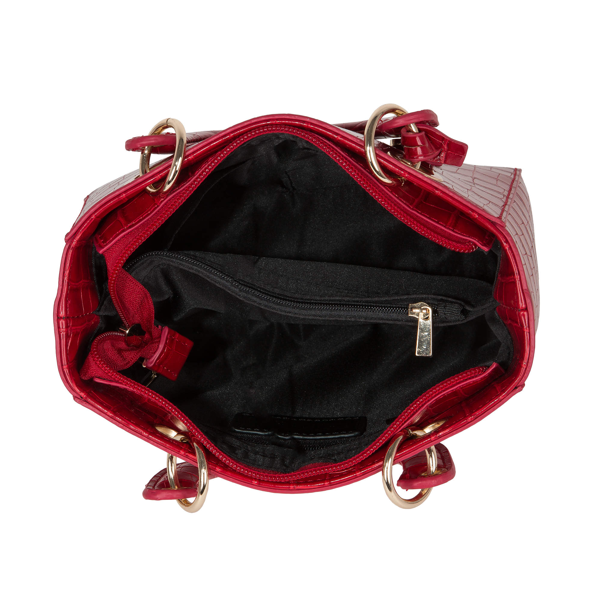 Миниатюрная, стильная сумочка фирмы Pola выполнена из лаковой экокожи с имитацией рептилии и является прекрасным аксессуаром для создания вечернего образа. Основное отделение закрывается на пластиковую молнию и внутри с помощью кармана посередине разделяет сумочку на два небольших отделения. Непревзойдённость данной модели придают оригинальные ручки в форме подковы, высота которых составляет 12см. Сумку можно также носить через плечо с помощью съёмного регулируемого ремня, максимальная длина которого составляет 118 см. Цвет фурнитуры-золото.