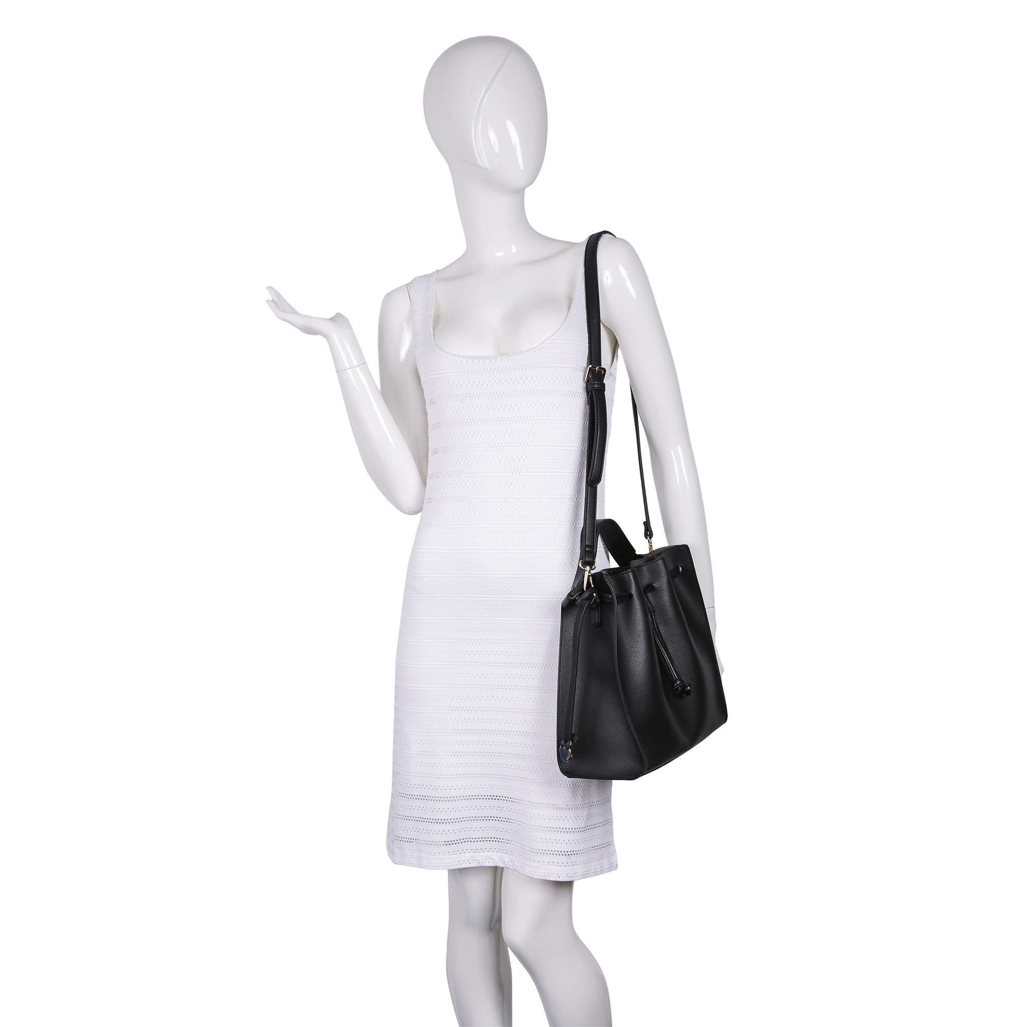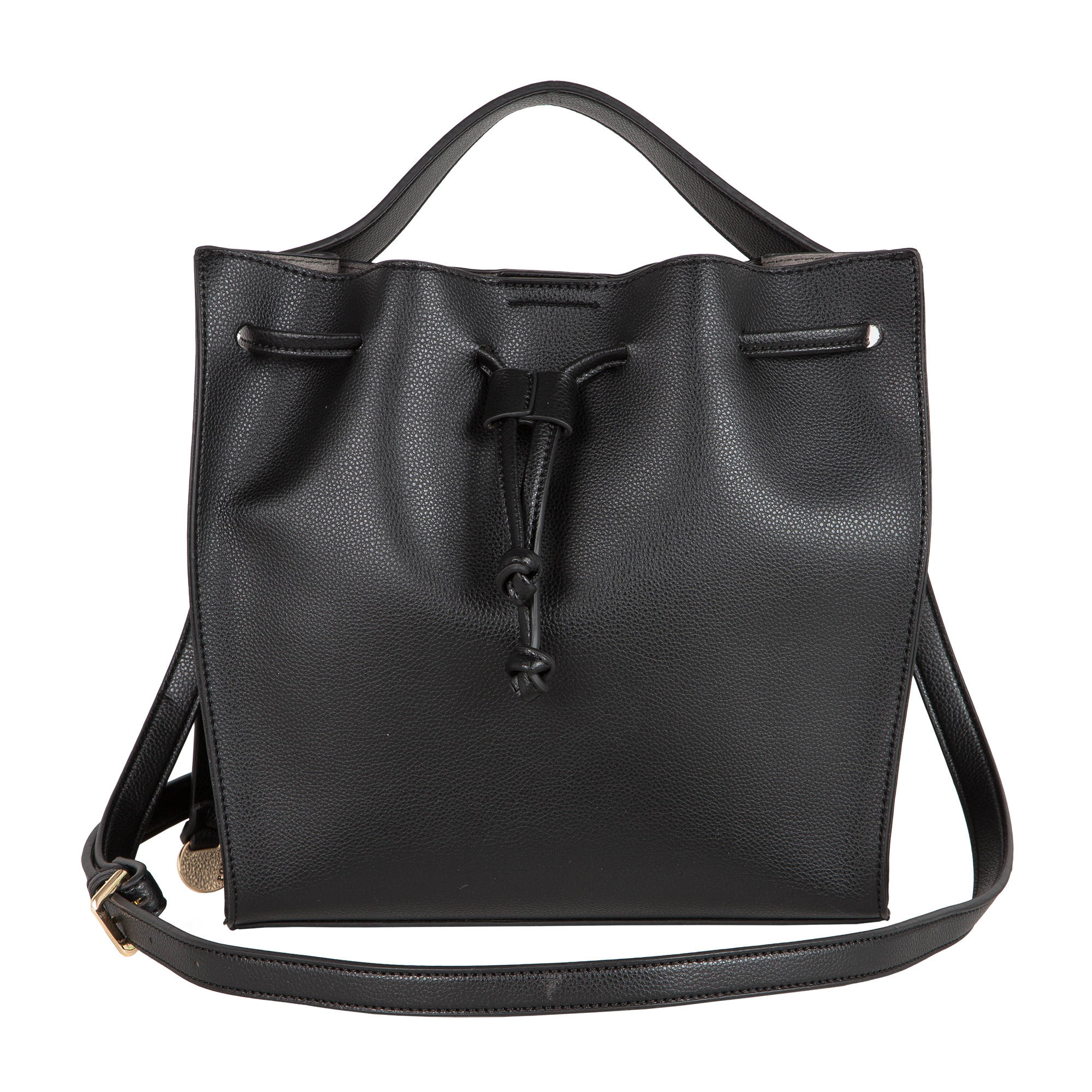 Удобная, вместительная сумка POLA выполнена из экокожи и прекрасно подходит для ежедневного использования. Модель затягивается с помощью шнурка и в свою очередь закрывается на магнитную кнопку, внутри основного отделения есть открытый кармашек. Сумку можно переносить с помощью ручки для переноски и съёмного регулируемого ремня, длина которого составляет 97 см.