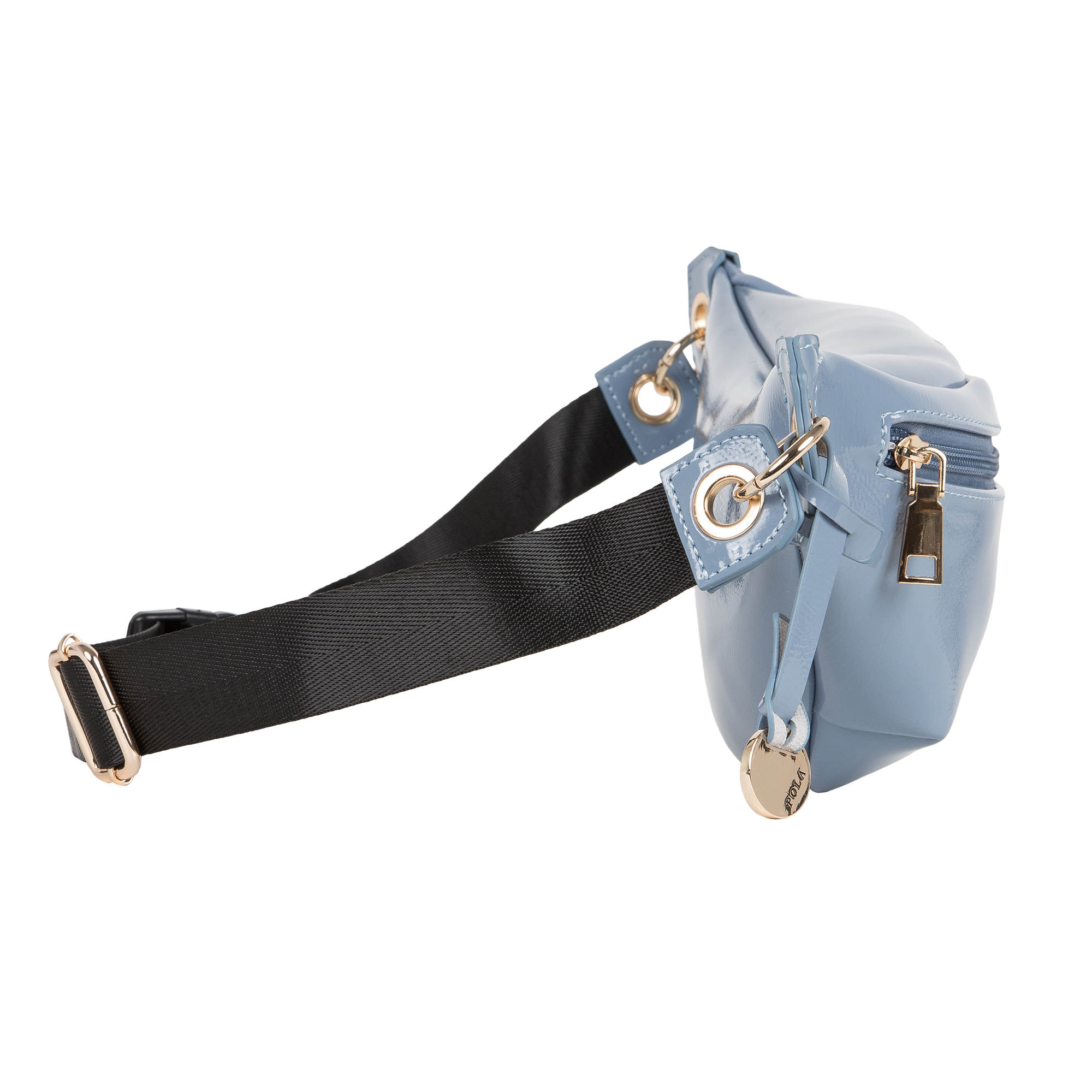 Ультрамодная поясная сумка от фирмы POLA выполнена из лаковой экокожи, представлена в разнообразной цветовой гамме и прекрасно подходит для ежедневного использования самыми взыскательными модницами, а также поклонницами спортивного стиля. Невероятное удобство и комфорт при использовании данной модели придаёт широкий, эластичный, регулируемый ремень, с помощью которого сумку можно носить как на поясе, так и на плече, а также крест-накрест. Основное отделение закрывается на пластиковую молнию, внутри есть небольшой кармашек на молнии, максимальная длина ремня 80см.